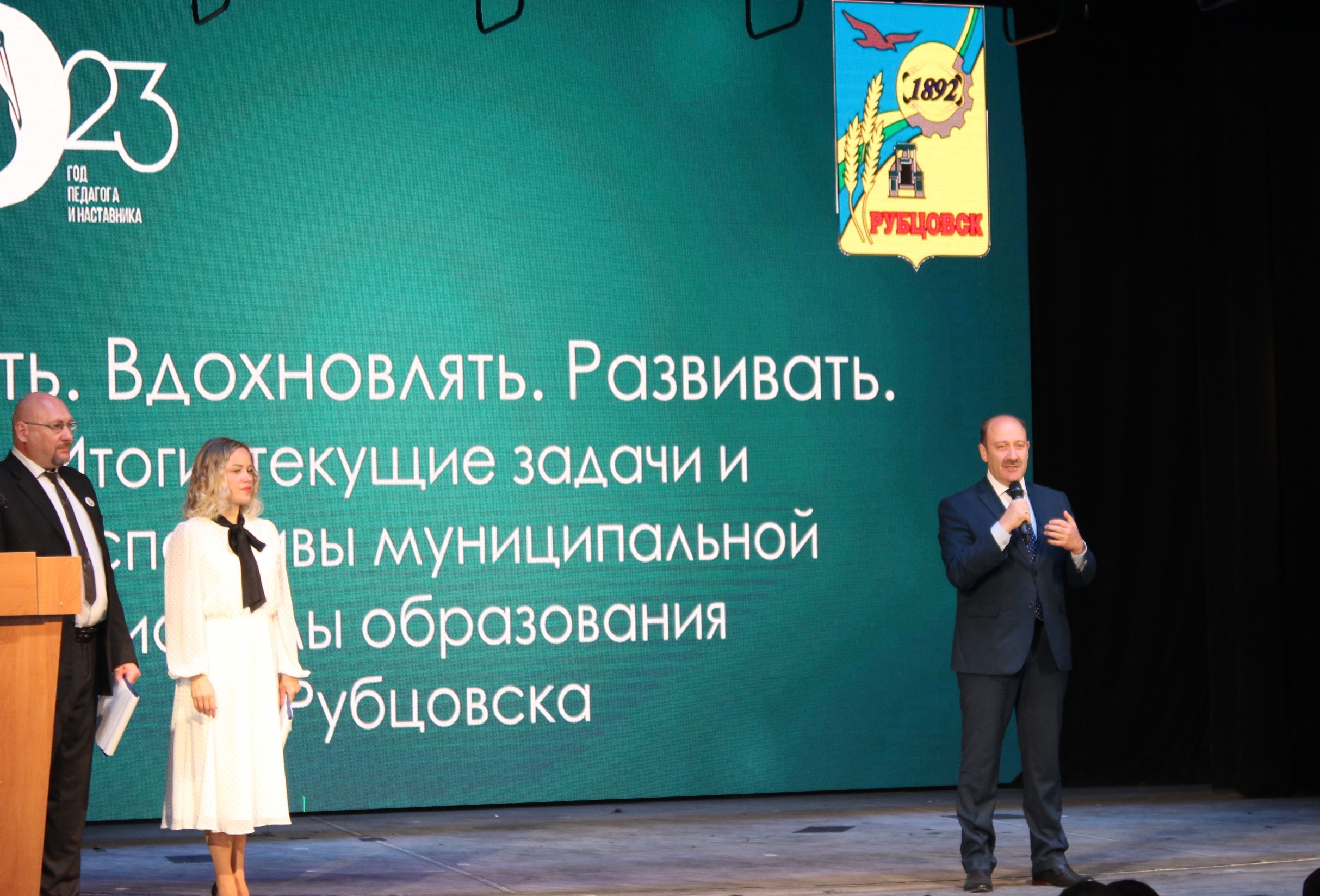 «Встреча открылась видеообращением министра просвещения России Сергея Кравцова, который поздравил педагогов с наступлением нового учебного года - Года педагога и наставника, назвал главные приоритеты, новшества, которые ждут систему образования нашей страны.