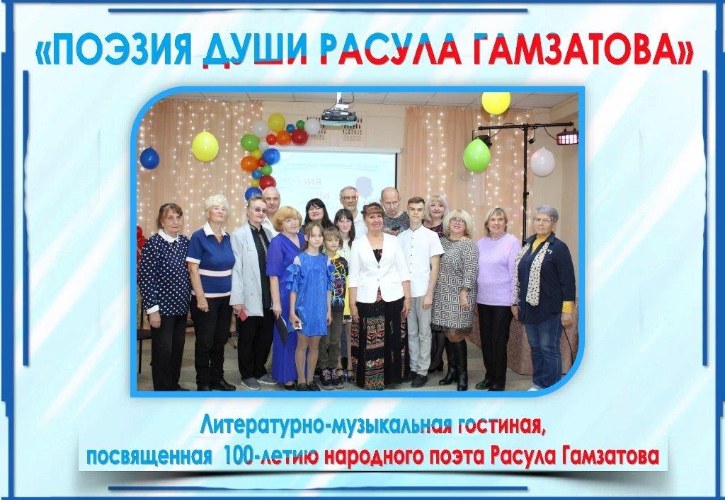 В рамках Всероссийского поэтического марафона «О Родине, о дружбе и любви» в Детско-юношеском центре состоялась тематическая литературно-музыкальная гостиная «Поэзия души Расула Гамзатова». В ней приняли участие региональное отделение Русского литературного клуба совместно с Советом женщин города Рубцовска. Непосредственными ее участниками также стали школьники – победители и призеры городского поэтического марафона, состоявшегося накануне.