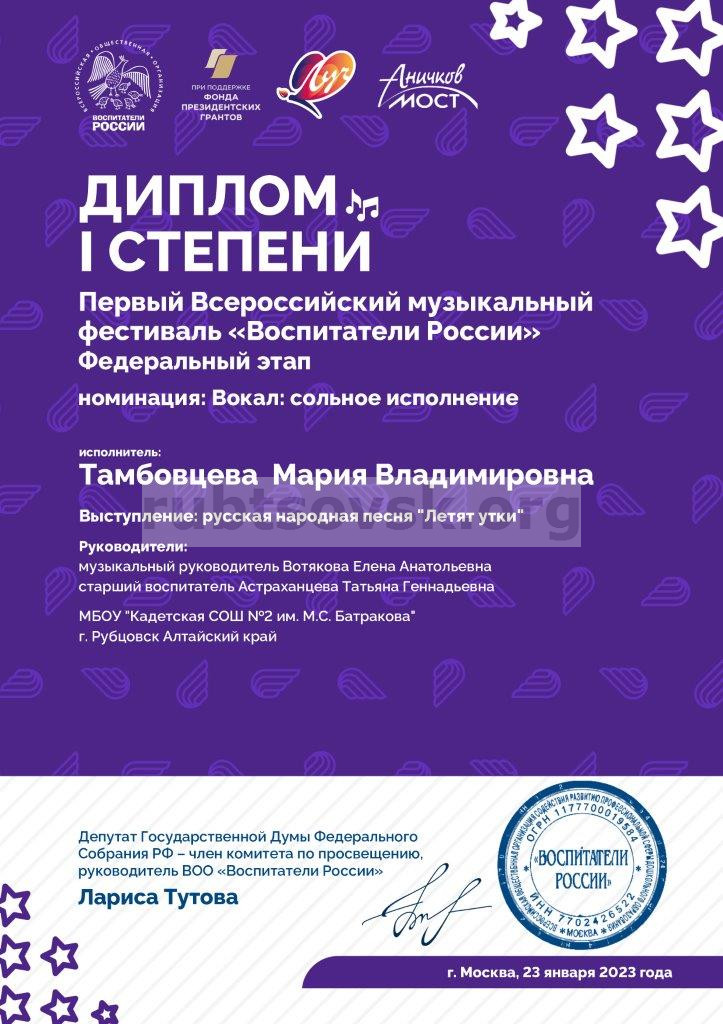 АРОО «ВПК «Отчизны верные сыны», созданная на базе МБОУ «СОШ №23», стала победителем в грантовом конкурсе, проводимым Фондом президентских грантов, с проектом «Мы – дети твои, Россия!». Размер гранта составил 2 338 084,00 рублей.