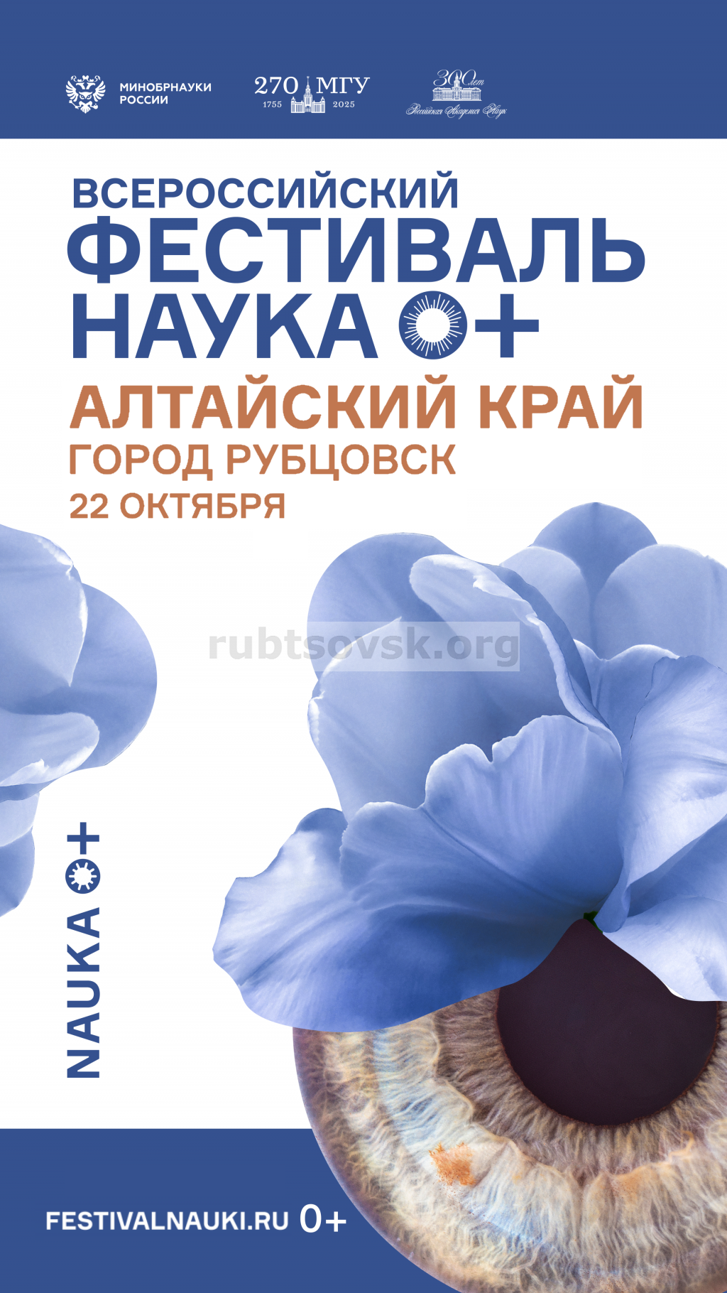 Всероссийский фестиваль науки «NAUKA 0+» стартует на площадке Рубцовского индустриального института 22 октября 2022 года. «NAUKA 0+» — один из крупнейших просветительских проектов в области популяризации науки в мире и одно из ключевых событий в рамках Десятилетия науки и технологий. Фестиваль организуют Министерство науки и высшего образования Российской Федерации, Правительство Москвы в лице Департамента образования и науки города Москвы, МГУ имени М.В. Ломоносова при поддержке РАН. Слоган фестиваля - «СОЗДАВАЯ БУДУЩЕЕ».