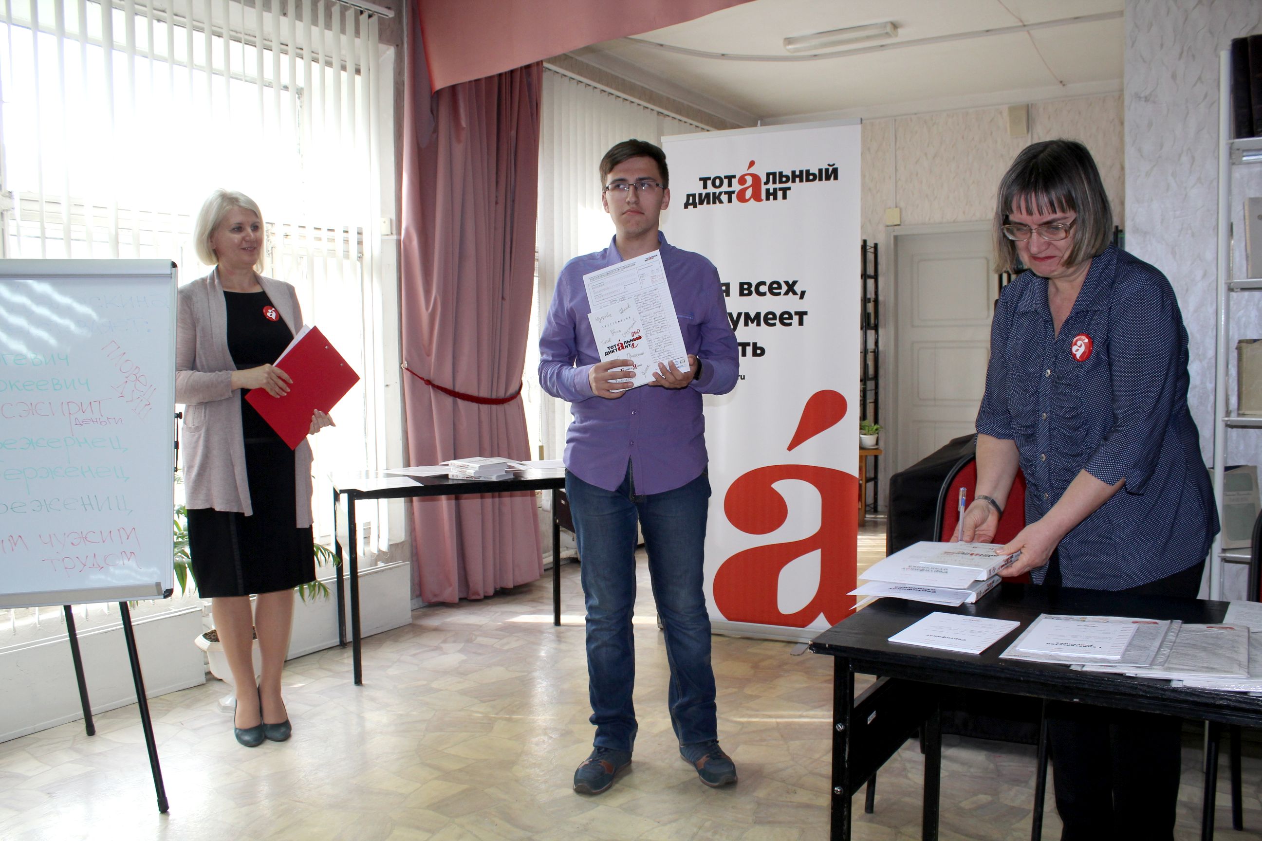 В минувшую пятницу в отделе искусств Центральной библиотеки состоялась церемония награждения отличников Тотального диктанта – 2019. Шестеро рубцовчан: Елена Изотова, Ксения Корсык, Владислав Менькин, Алена Савицкая, Мария Филинова и Раиса Якименко написали вторую часть текста Павла Басинского на «пять». Помимо сертификата отличника каждый из них получил в подарок «Хрестоматию Тотального диктанта» и бесплатный доступ к пяти книгам от крупнейшего сервиса электронных и аудиокниг ЛитРес. Ещё три «Хрестоматии Тотального диктанта» переданы в фонды библиотек – площадок Тотального диктанта в Рубцовске.