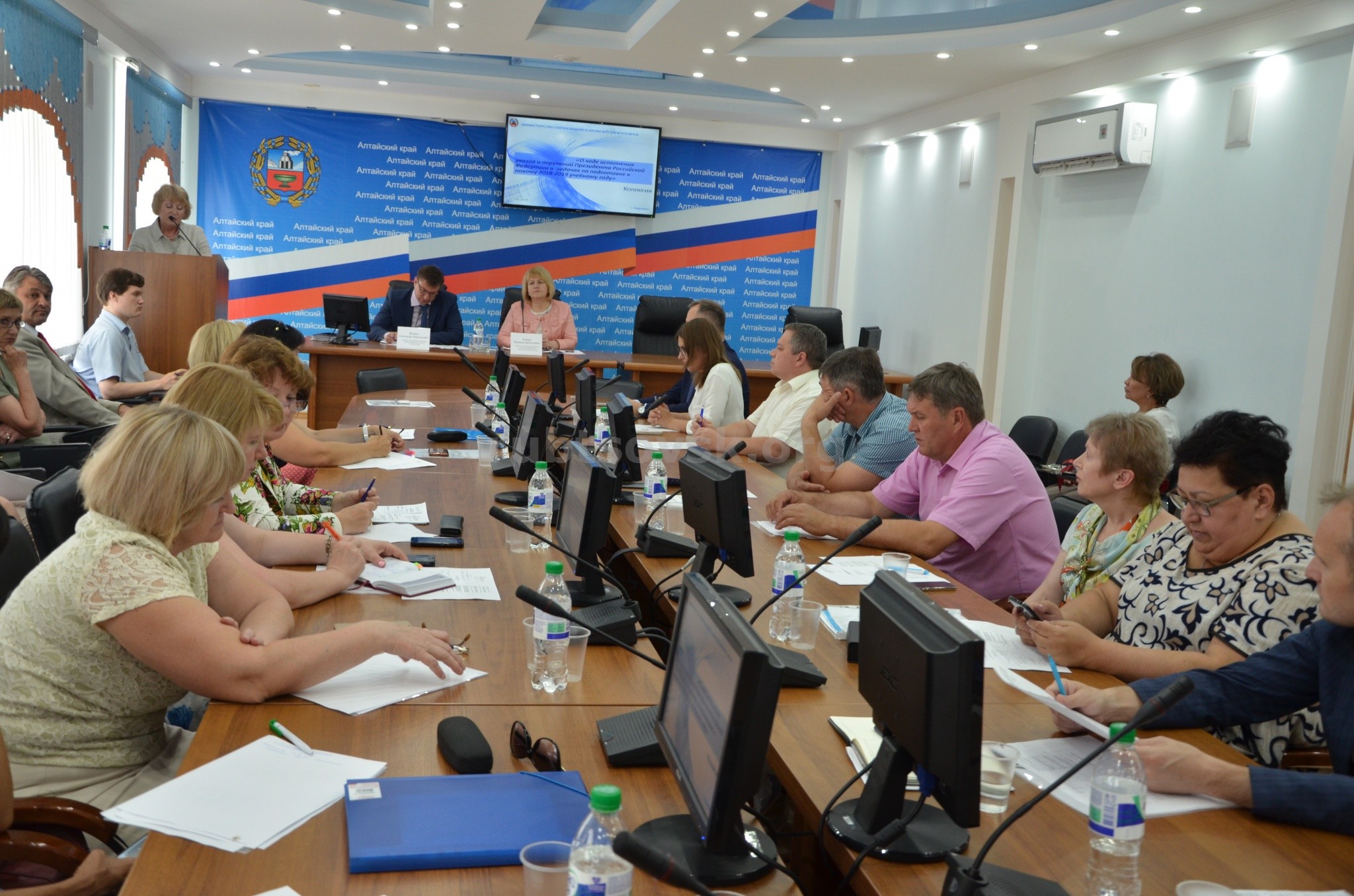 Главной темой совещания стало обсуждение исполнения указов и поручений Президента РФ в сфере образования. Так, врио заместителя министра образования и науки Алтайского края Марина Дюбенкова доложила о доступности услуг дошкольного образования в регионе.