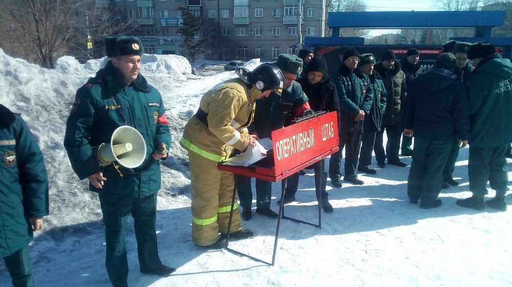 12 марта в КРЦ « Россия» прошли пожарно-тактические учения. Согласно тактическому замыслу из-за короткого замыкания электропроводки возник пожар в кинооператорской на втором этаже. Сразу же персонал объекта передал информацию о возгорании на центральный пункт пожарной связи. Вскоре еще до прибытия подразделений пожарной охраны началась эвакуация из здания объекта. Однако, несколько посетителей и персонал не смогли оперативно покинуть задымленное помещение. Прибывшие на место происшествия сотрудники МЧС России первоочередно создали звенья газодымозащитной службы для поиска и спасения людей, находящихся внутри.
