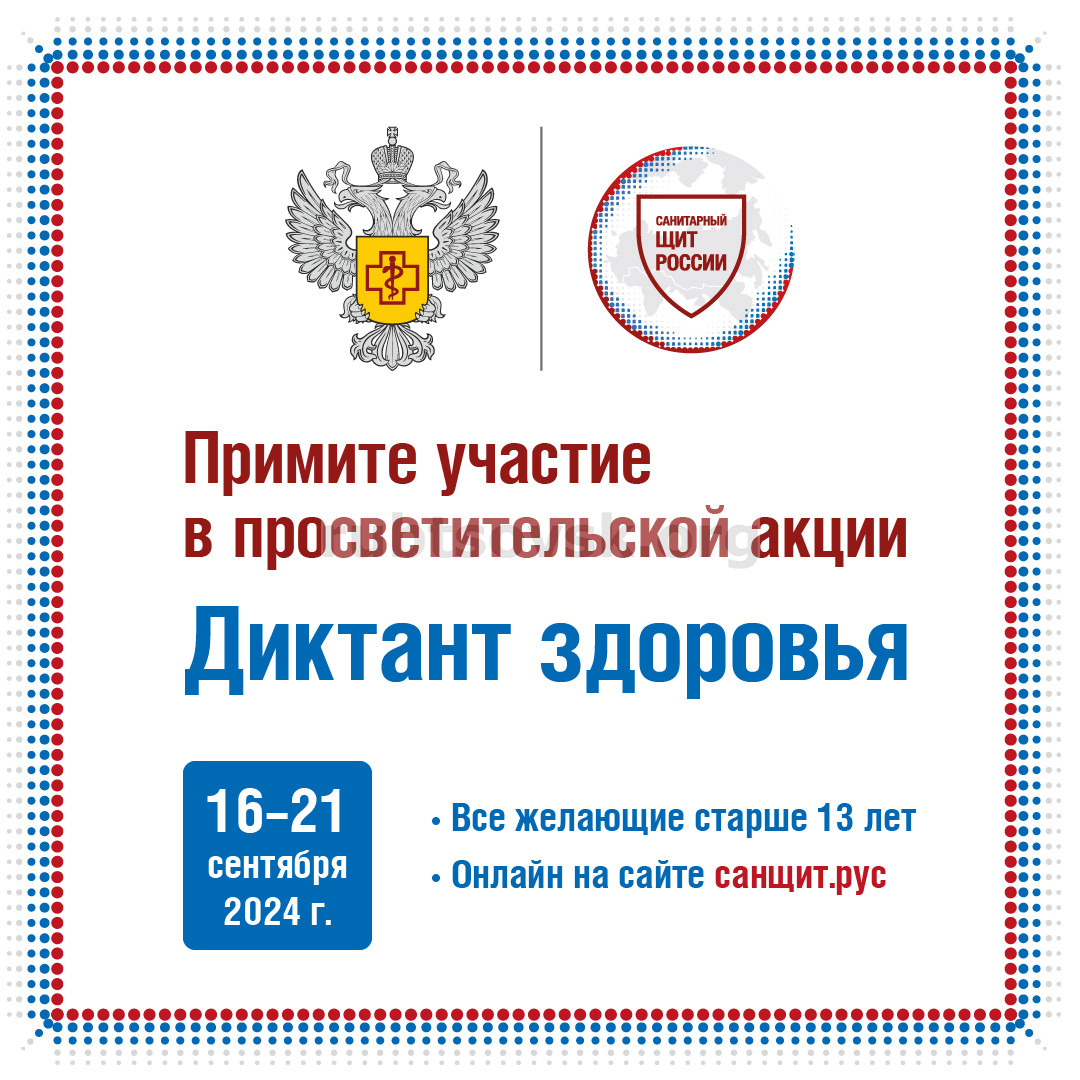 Цель мероприятия – популяризация санитарно-гигиенической грамотности и норм здорового образа жизни. Участники «Диктанта здоровья» проверят свои знания по основным правилам личной гигиены, здоровому питанию и профилактике заболеваний. В акции смогут принять участие все желающие старше 13 лет.