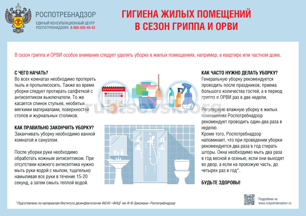 В сезон гриппа и ОРВИ особое внимание следует уделять уборке в жилых помещениях.