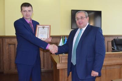 Руководитель краевого Управления Росреестра Юрий Калашников вручил Дмитрию Александровичу благодарность на прошедшем 6 июля аппаратном совещании, лично поздравил с заслуженной наградой и пожелал дальнейших успехов в профессиональной деятельности.