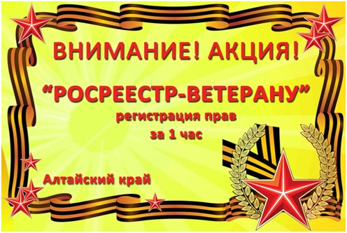Управление Росреестра по Алтайскому краю совместно с филиалом ФГБУ «ФКП Росреестра» по Алтайскому краю проводят акцию для ветеранов и вдов ветеранов Великой Отечественной войны.