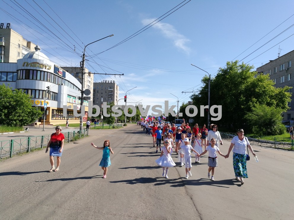 Праздник открылся шествием «Россия! Родина! Мы!», которое начало движение в 17:30 от сквера Комсомольской славы к площади им. В.И. Ленина, сообщает официальный сайт газеты "Местное время". Первой по главному городскому проспекту проследовала колонна мотоциклистов с флагами России. А уже следом выдвинулась основная колонна, сформированная из трудовых, спортивных и творческих коллективов, студентов и преподавателей высших и средних учебных заведений, Союза пенсионеров Рубцовска.