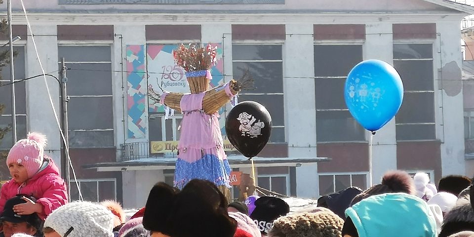 Веселый праздник охватил всю площадь: игровые аттракционы, горячий чай, вкусные блины. Во Дворце культуры работала выставка-ярмарка меда и работ рубцовских мастеров-умельцев. Кульминацией праздника стало сожжение чучела Зимы. Оно горело красиво, жарко, ярко и долго.