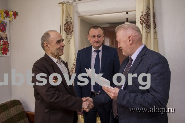 А также совместно с первым заместителем Главы Администрации Рубцовска Владимиром Пьянковым, начальником управления социальной защиты населения Рубцовска Мариной Ерошкиной поздравили ветерана Великой Отечественной войны Ивана Волошенко с 90-летним юбилеем.
