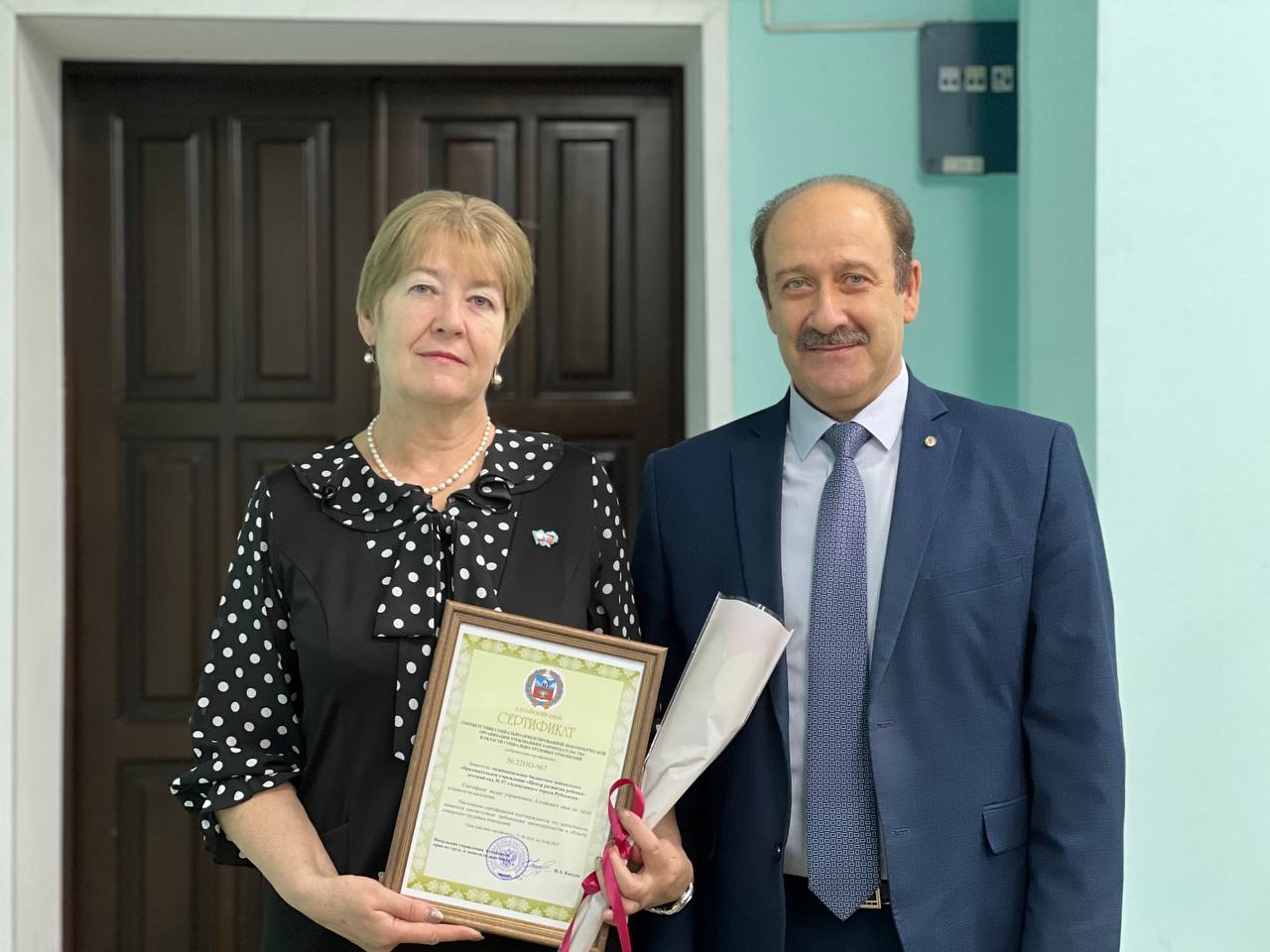 Сегодня, 28 октября, на аппаратном совещании Глава города Рубцовска Дмитрий Фельдман поздравил с присвоением статуса «Социально ответственный работодатель» заведующего МБДОУ «Центр развития ребенка «Детский сад № 57 «Аленушка» города Рубцовска Ольгу Такмакову и вручил сертификат соответствия социально ориентированным некоммерческим организациям требованиям законодательства в области социально-трудовых отношений.