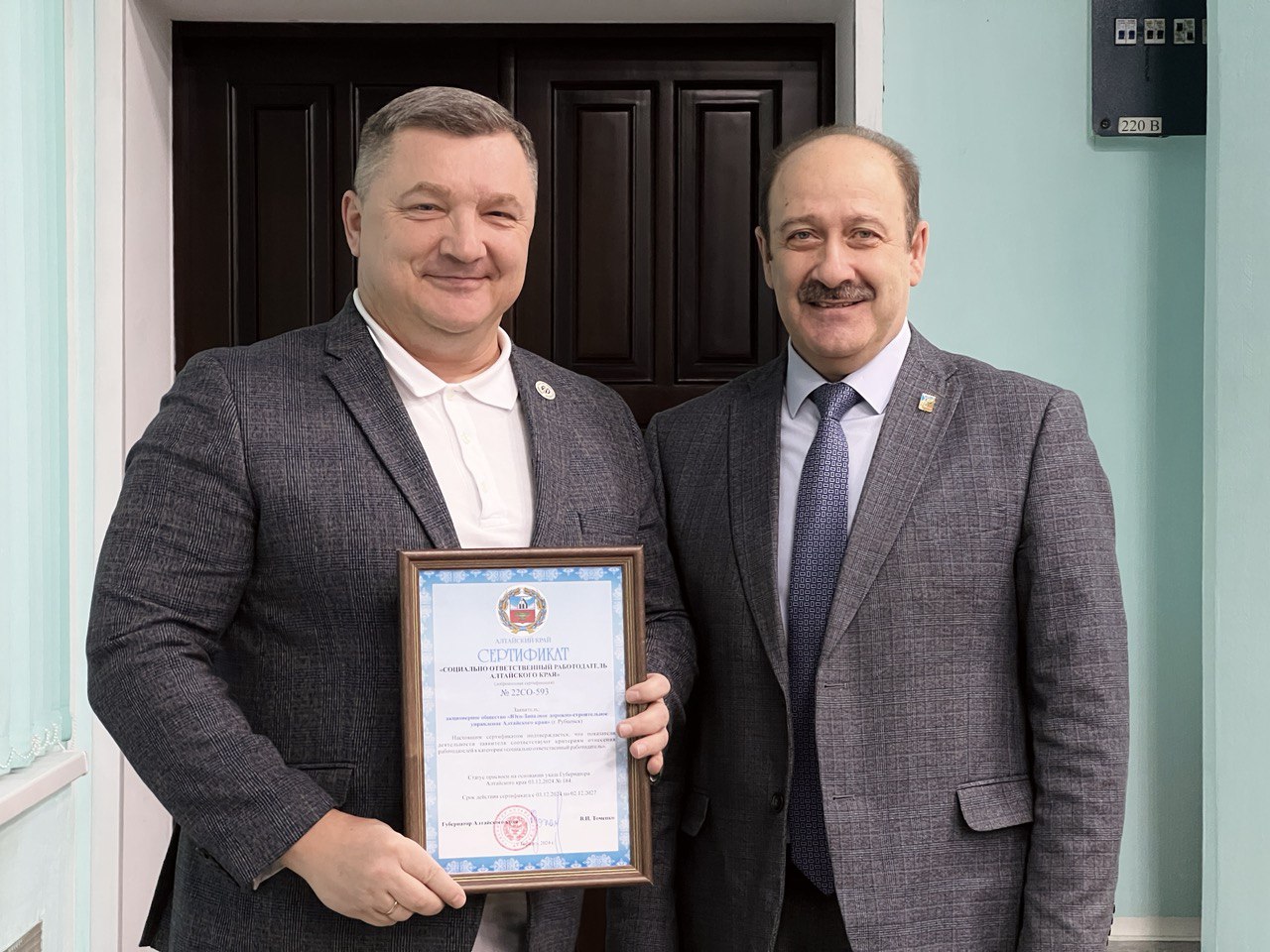 16 декабря на аппаратном совещании Глава города Рубцовска Дмитрий Фельдман поздравил генерального директора АО «Юго-Западное дорожно-строительное управление Алтайского края» (г. Рубцовск) Игоря Левина с присвоением статуса «Социально ответственный работодатель Алтайского края».