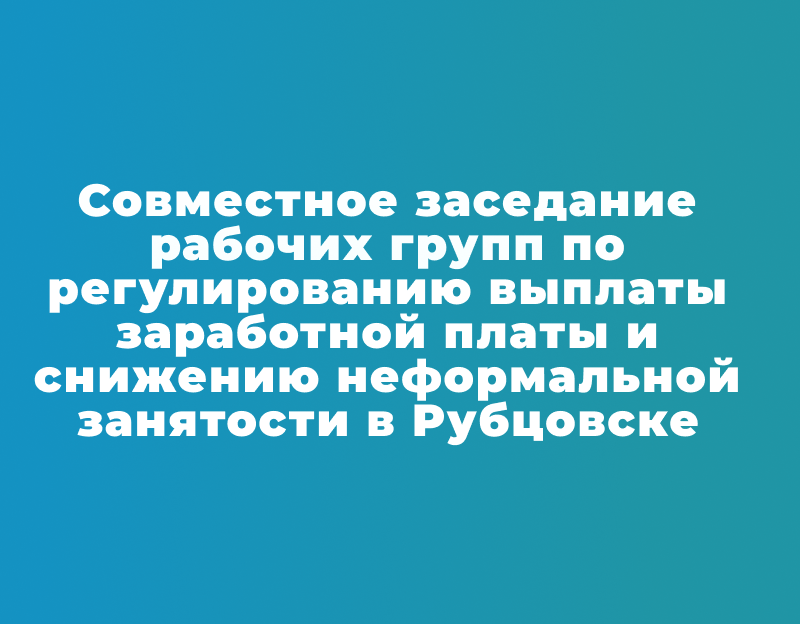 23 августа в Администрации города Рубцовска состоялось очередное совместное заседание рабочих групп по регулированию выплаты заработной платы и снижению неформальной занятости.