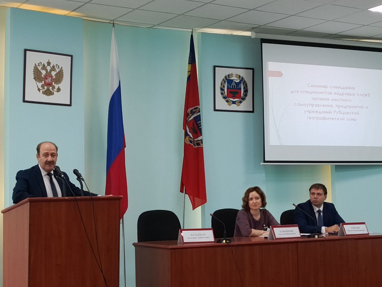 Сегодня в Администрации города состоялся краевой семинар-совещание со специалистами кадровых служб органов местного самоуправления, предприятий и учреждений Рубцовской географической зоны. На семинаре присутствовали сотрудники органов местного самоуправления, отвечающие за реализацию наградной работы, а также специалисты кадровых подразделений крупных предприятий, учреждений и организаций Рубцовска. С приветственным словом к участникам семинара обратился Глава города Дмитрий Фельдман.