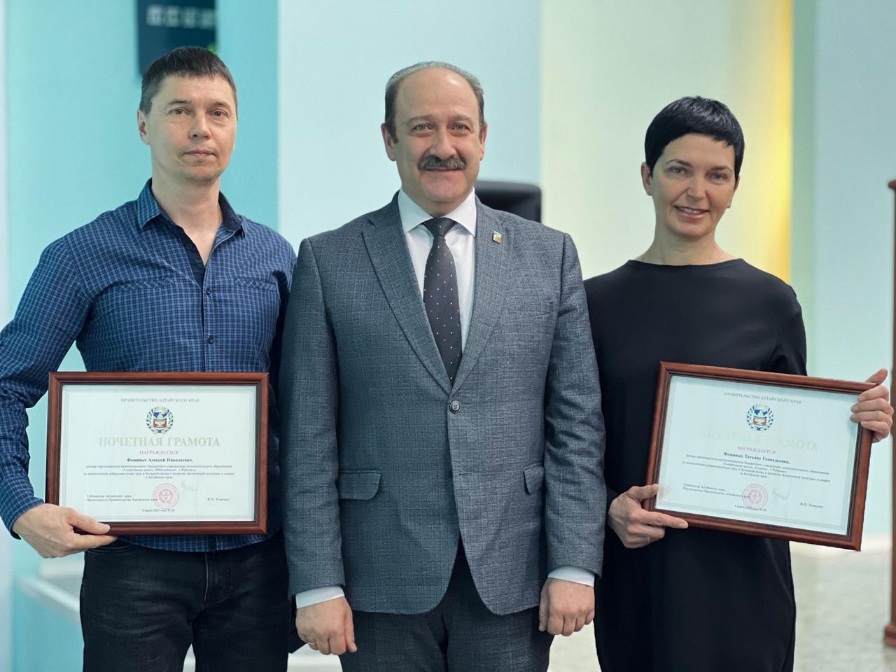 9 и 10 марта в Администрации города и в СШ «Юбилейный» прошла церемония вручения краевых правительственных наград в области физической культуры и спорта. За многолетний добросовестный труд и высокий профессионализм медалью «За заслуги в труде» удостоена заместитель начальника управления культуры, спорта и молодежной политики Рубцовска Лариса Янцен. Почетными грамотами Правительства Алтайского края наградили: директора СШ «Юбилейный» Ирину Кобзаренко, преподавателя СШ «Спарта» Татьяну Фоминых и тренера-преподавателя СШ «Юбилейный» Алексея Фоминых.