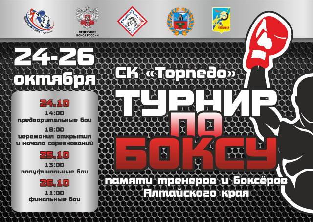 С 24 по 26 октября в городе Рубцовске состоится турнир по боксу, посвящённый памяти тренеров и боксёров Алтайского края.