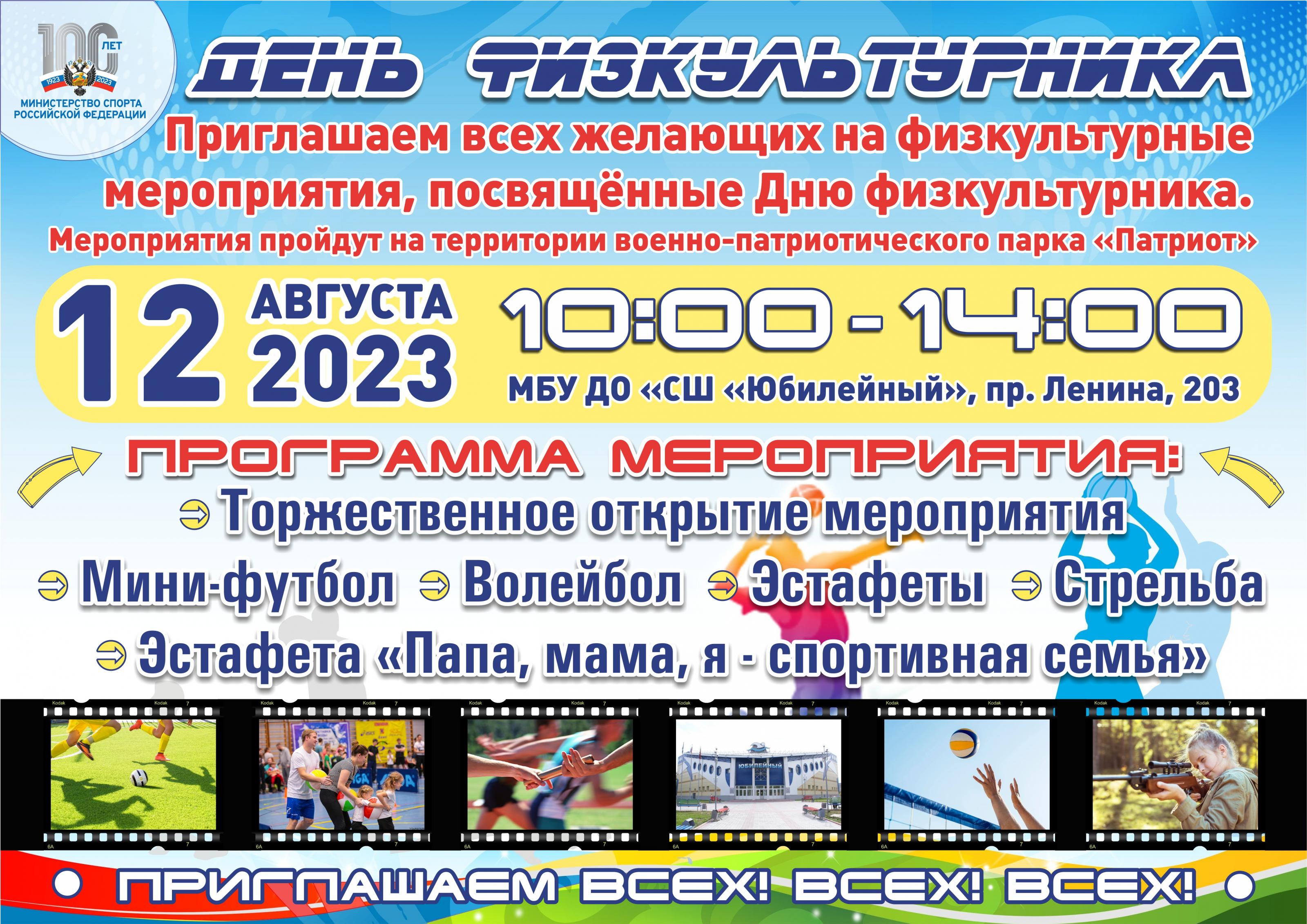 12 августа с 10:00 по 14:00 пройдет мероприятие ко Дню физкультурника.