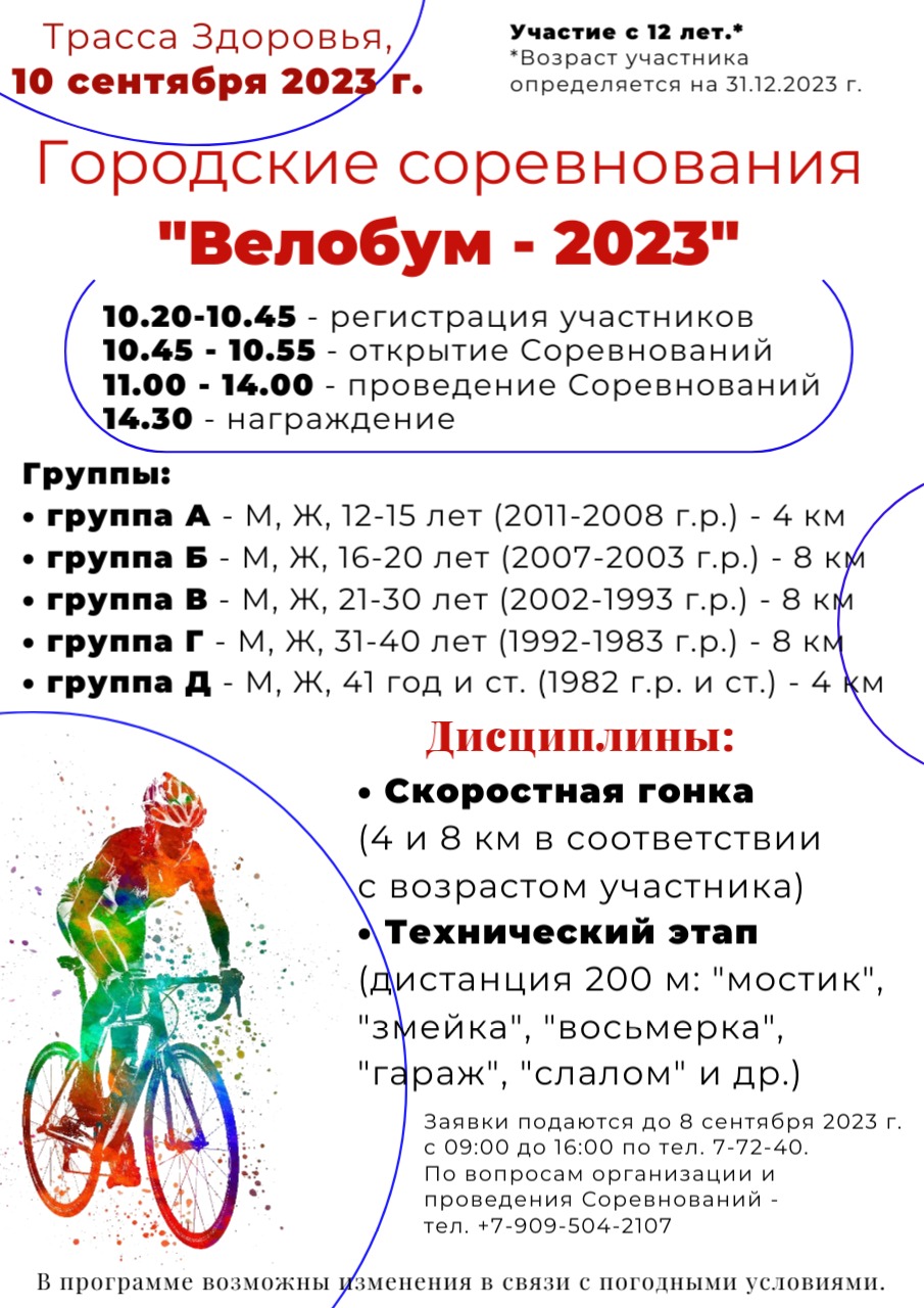 Уважаемые рубцовчане, 10 сентября в Рубцовске пройдут городские соревнования "Велобум - 2023".