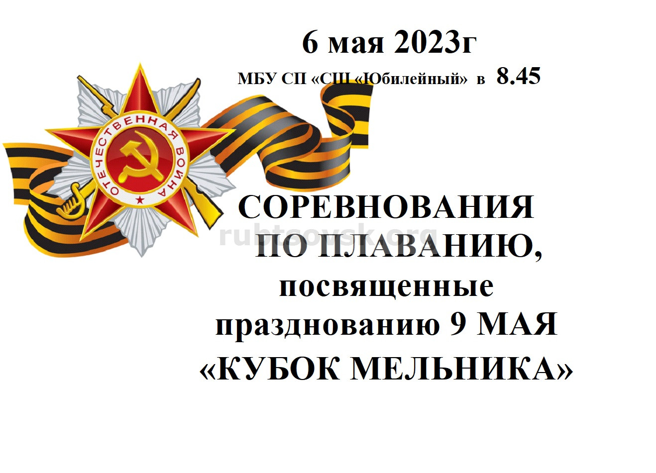 6 мая в МБУ СП "СШ "Юбилейный" пройдут соревнования по плаванию, посвященные празднованию 9 мая "Кубок Мельника".