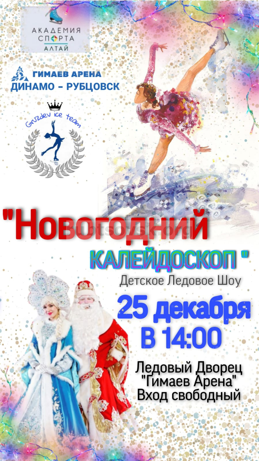 Приглашаем на предновогодний ледовый праздник красоты и грации, музыки и танца - показательные выступления фигуристов города Рубцовска. Ждем всех любителей этого фантастического вида спорта 18 декабря в 13.00 на ледовой площадке спортивного комплекса "Гимаев Арена".
