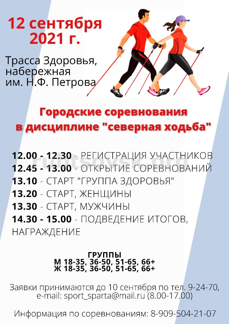 Получить заряд бодрости, наполниться позитивной энергией приглашают организаторы городских соревнований по спортивному туризму в дисциплине «Северная ходьба». Сбор всех желающих проверить свои силы в несложном, но увлекательном виде спорта состоится 12 сентября в 12-00 на «Трассе здоровья» в районе набережной им. Н.Ф. Петрова.