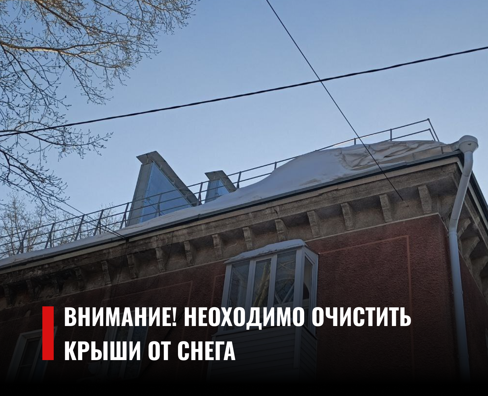 Уважаемые руководители предприятий и организаций, собственники зданий, управляющие организации! В период оттепели риск схода снежных масс и падения сосулек особенно велик, что может привести к травмам людей и повреждению имущества. Обратите внимание и запланируйте работы по очистке крыш от снега и наледи во избежание трагедии.