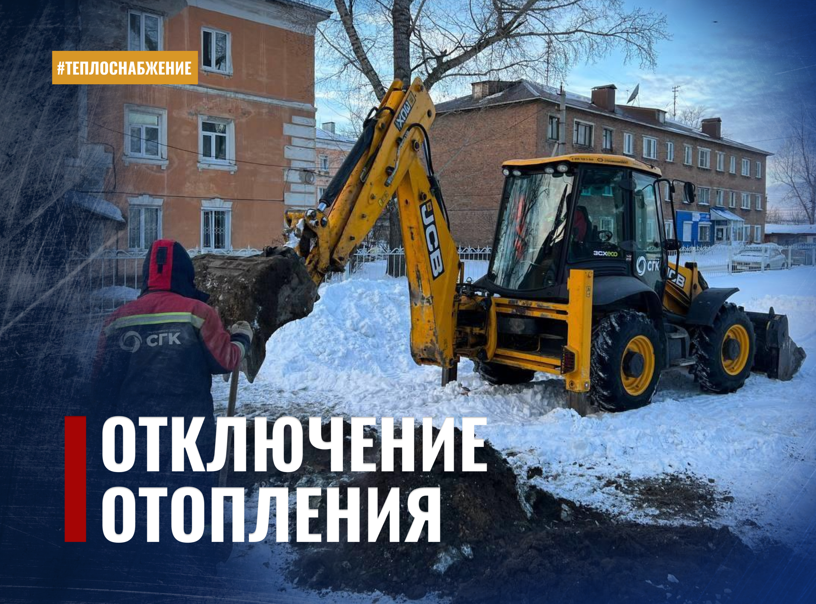 По информации управления по делам ГОЧС города Рубцовска, в связи с аварийными работами на теплотрассе отключено отопление по адресам: пр-кт Ленина, 38, 40, 42, 44, 46, 46а, 46б, 42а, 48, ул. Комсомольская, 125, 129, 127, 133, 131, 121, 123, 129б, 121а, ул. Дзержинского, 6, 8, 10. Диаметр трубы 150 мм.