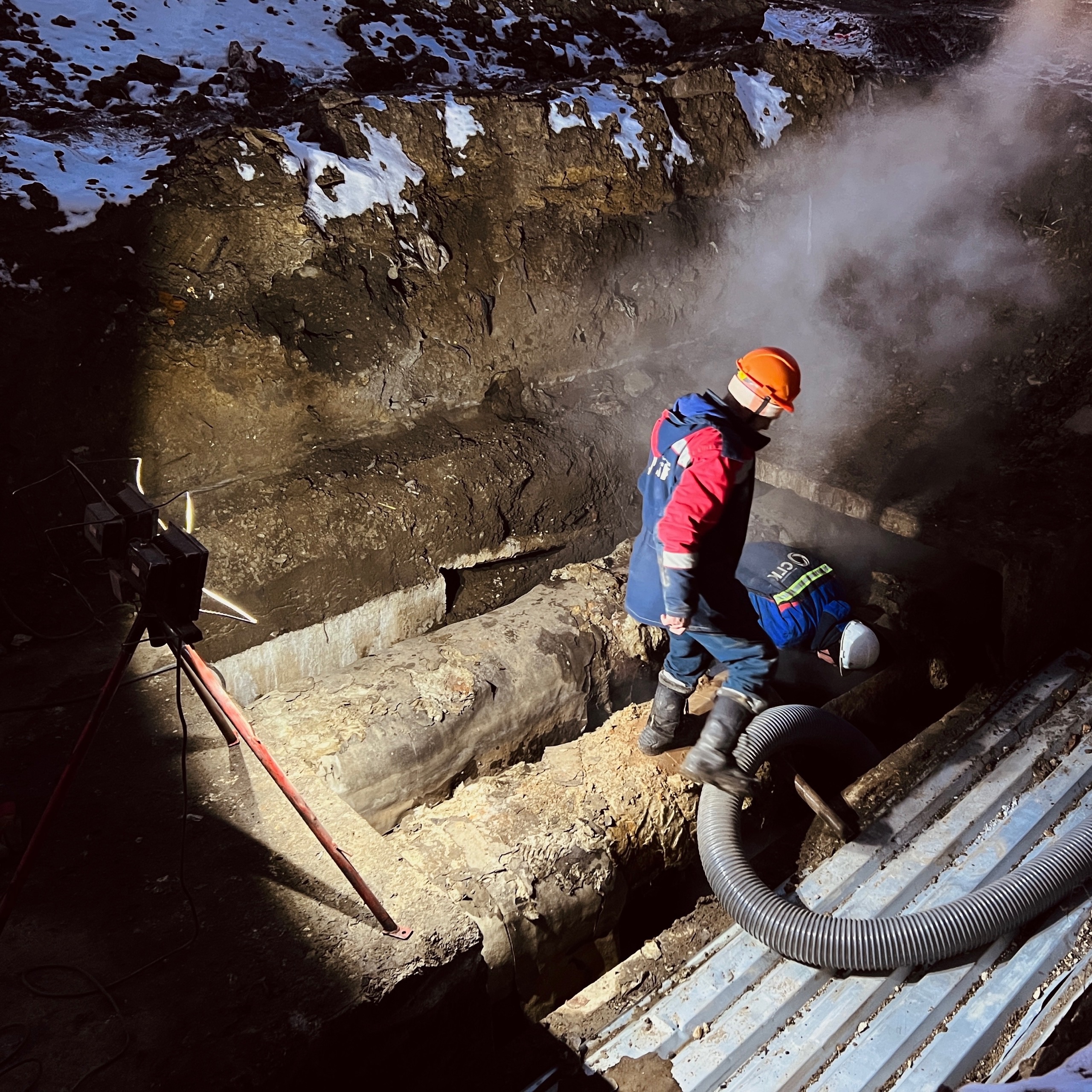 Завершены ремонтные работы на первой точке в северной части города – улица Октябрьская. Ремонт производился без раскопа – в тепловой камере на трубопроводе диаметром 100 мм. Отопление запустили к потребителям.