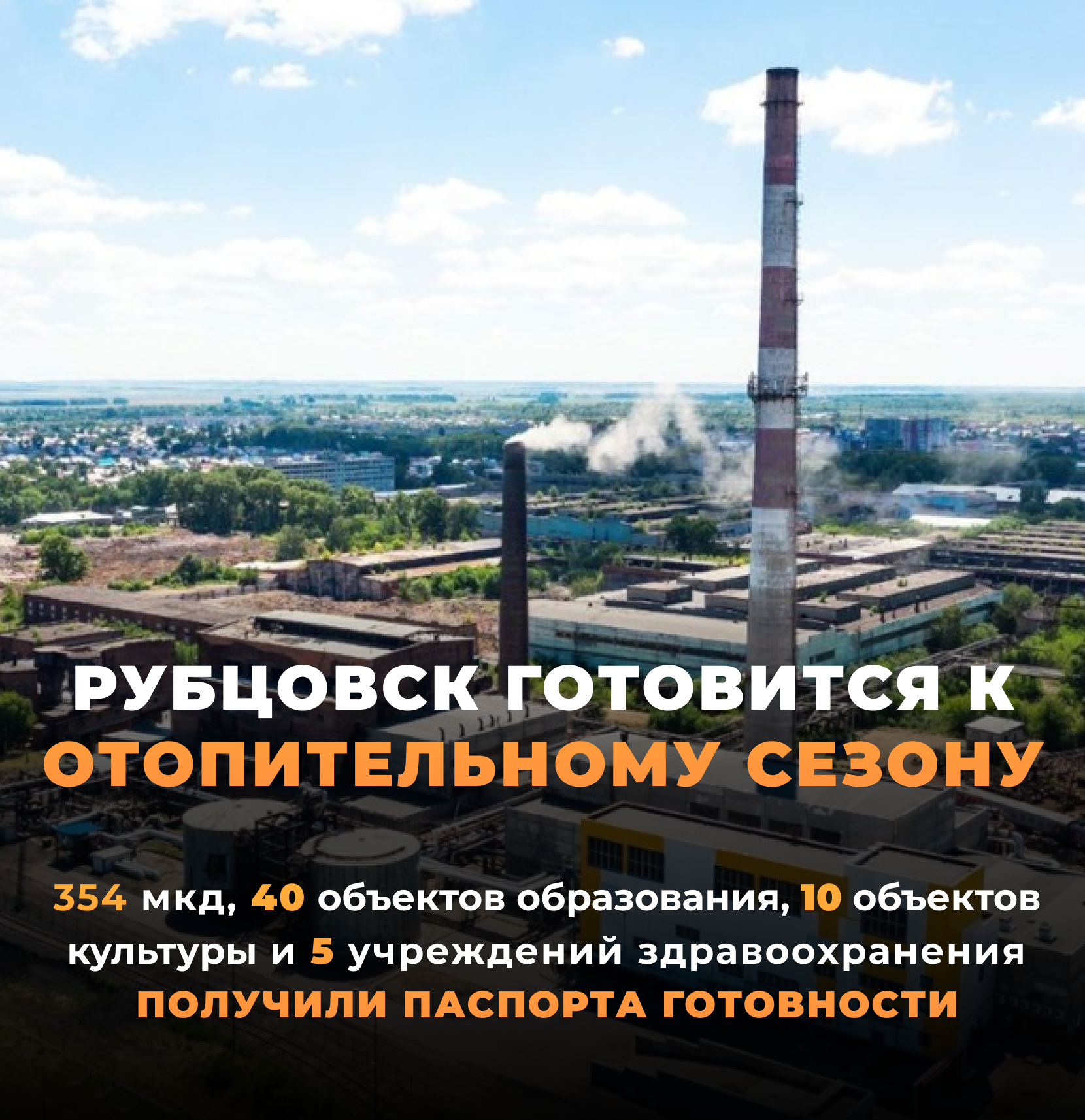 - Подготовка к зиме завершена, и все необходимые меры приняты для подачи тепла в дома и социальные учреждения. Все объекты соцкультбыта - школы, детские сады и больницы - получили паспорта готовности. Все многоквартирные дома также получили паспорта готовности. Их в Рубцовске – 728.