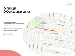 За время ремонта теплоэнергетики приведут в порядок 444 метров тепловых сетей отопления в однотрубном исчислении. Сейчас на улице Жуковского ведется демонтаж старой трассы трубопровода отопления (две ветки).