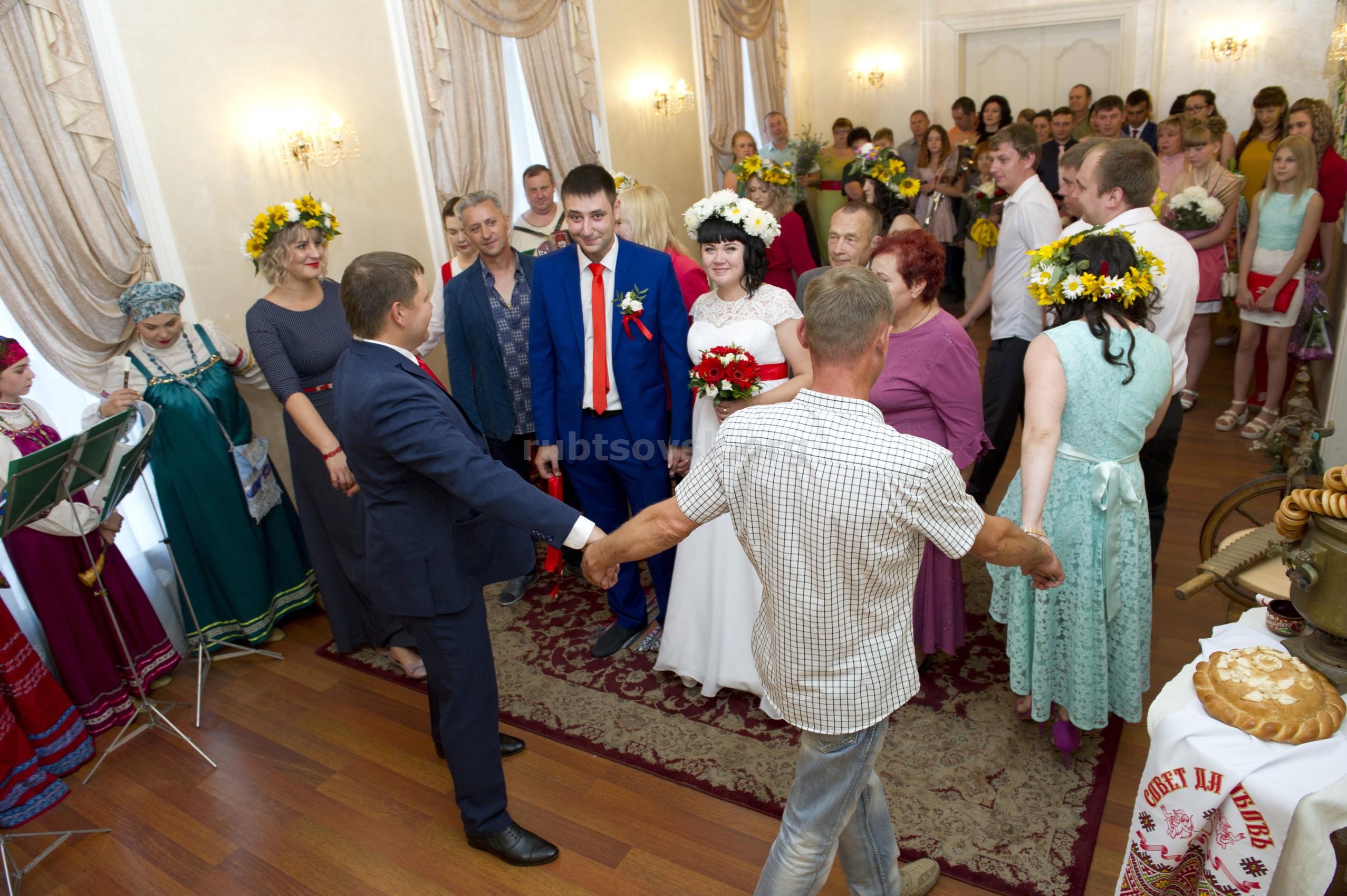Во время государственной регистрации заключения брака были соблюдены многие старинные обряды бракосочетания: молодые находили обручальные кольца в чаше с зерном, символизирующей плодородие и пропитание, вставали на традиционный «подножник» и повязывались рушником.