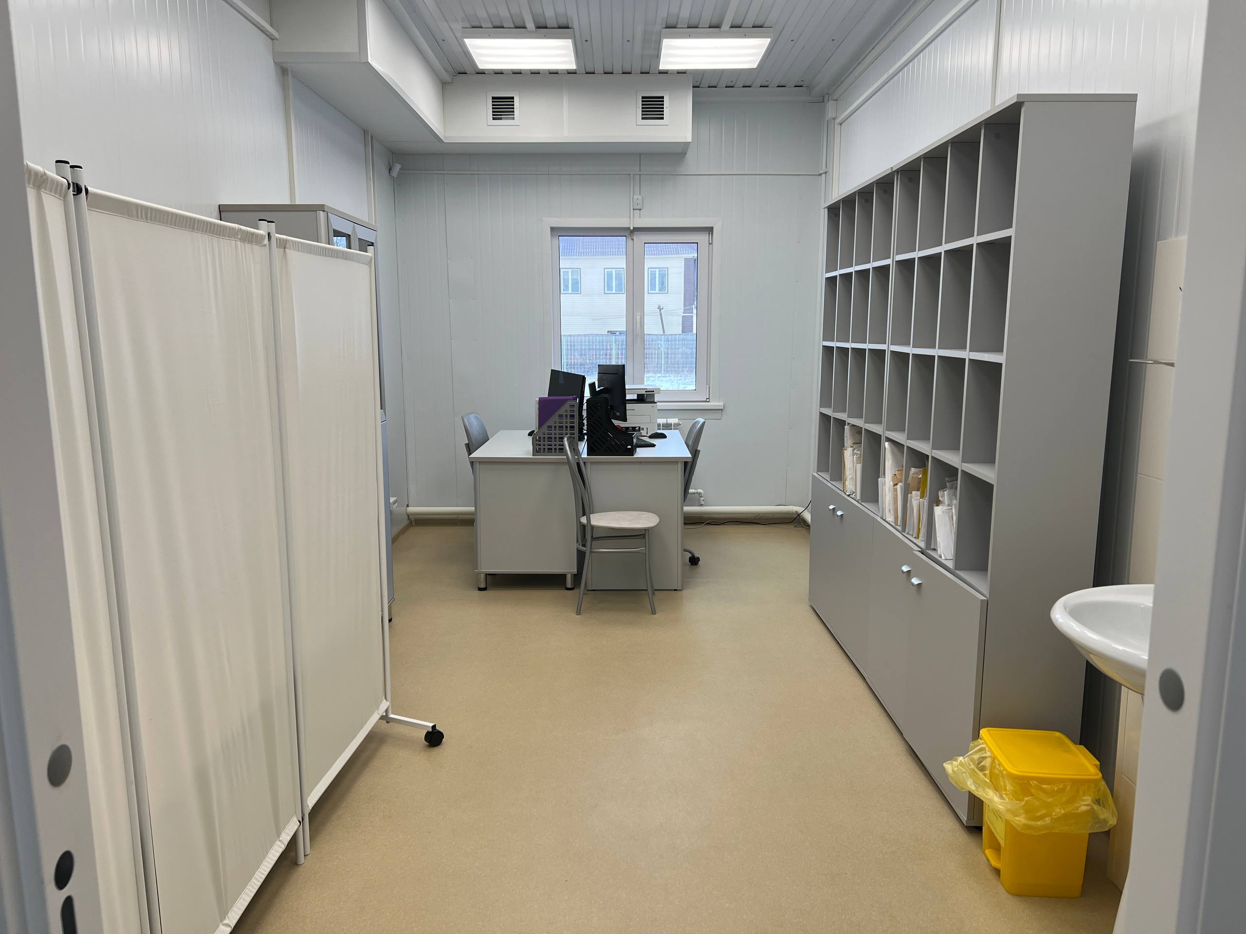 Поликлиника спроектирована по современным стандартам с разделением на: «Чистую зону» для персонала с кабинетами, комнатой отдыха, санпропускником и душевыми; «Грязную зону» для пациентов с регистратурой, гардеробом и шестью специализированными кабинетами.