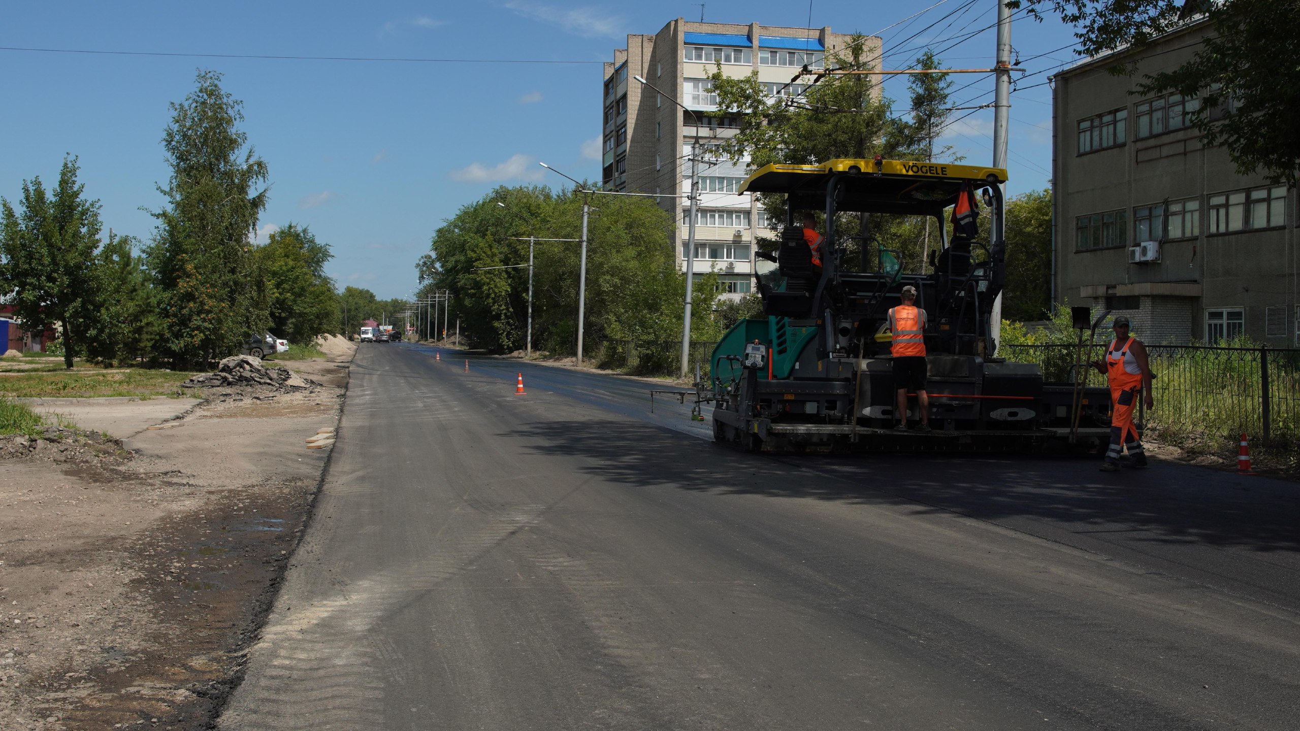 Сегодня на улице Калинина дорожники завершили укладку нижнего слоя асфальта. В скором времени специалисты приступят к установке бордюрного камня. На улице Тихвинской (от ул. Комсомольской до ул. Алтайской) завершена укладка двух слоев асфальтобетона.