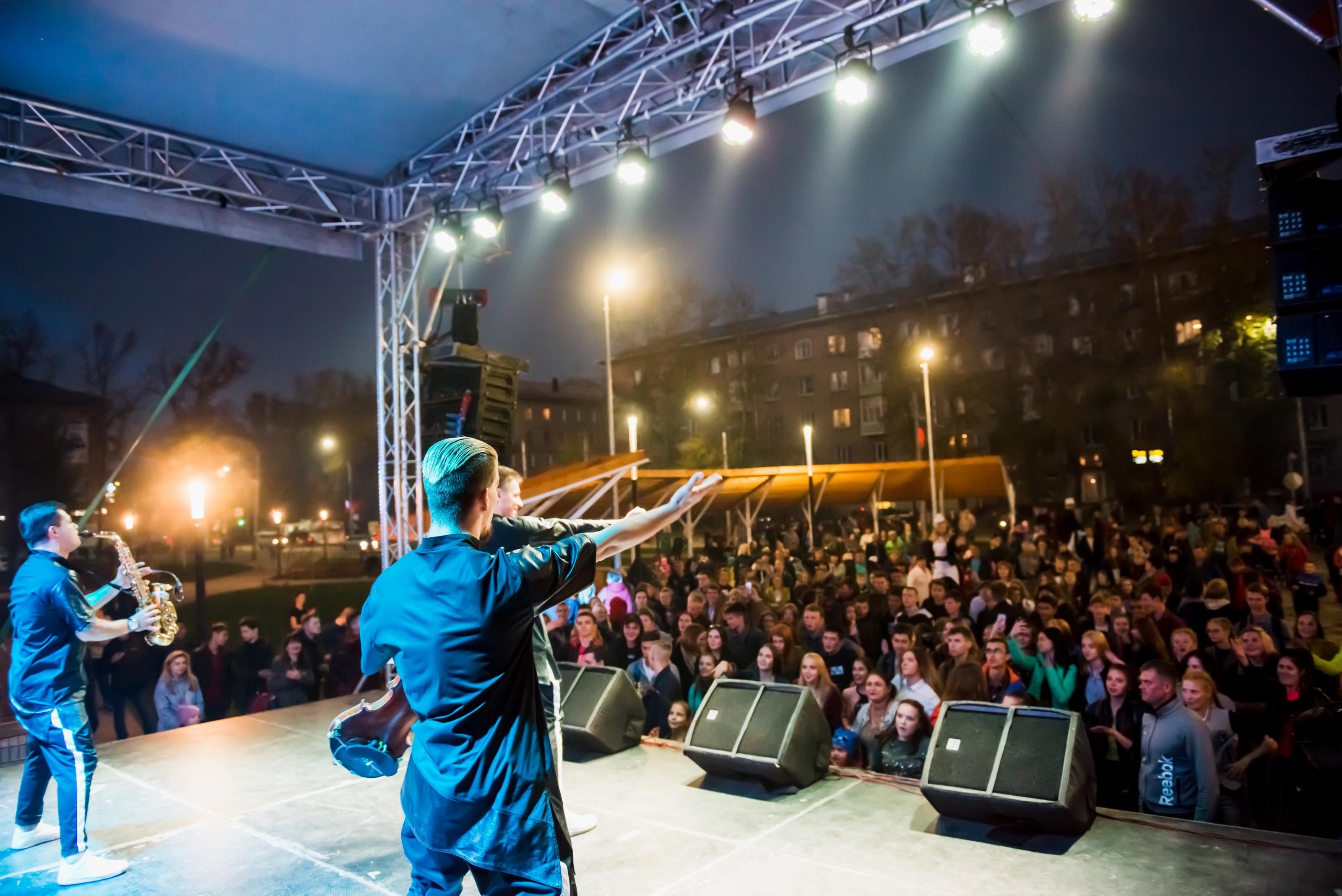 Вечером подарок ждал рубцовскую молодежь. В этот день в аграрно-промышленном проходило посвящение в студенты. Чтобы поздравить их с появлением в городе современного сквера с зоной отдыха и освещением была организована «Вечерняя линейка», на которую приехали гости из Новосибирска группа OFB Патиракеты. Всех пришедших на праздник ждали конкурсы и подарки, зажигательные танцы.