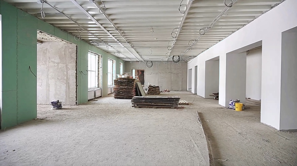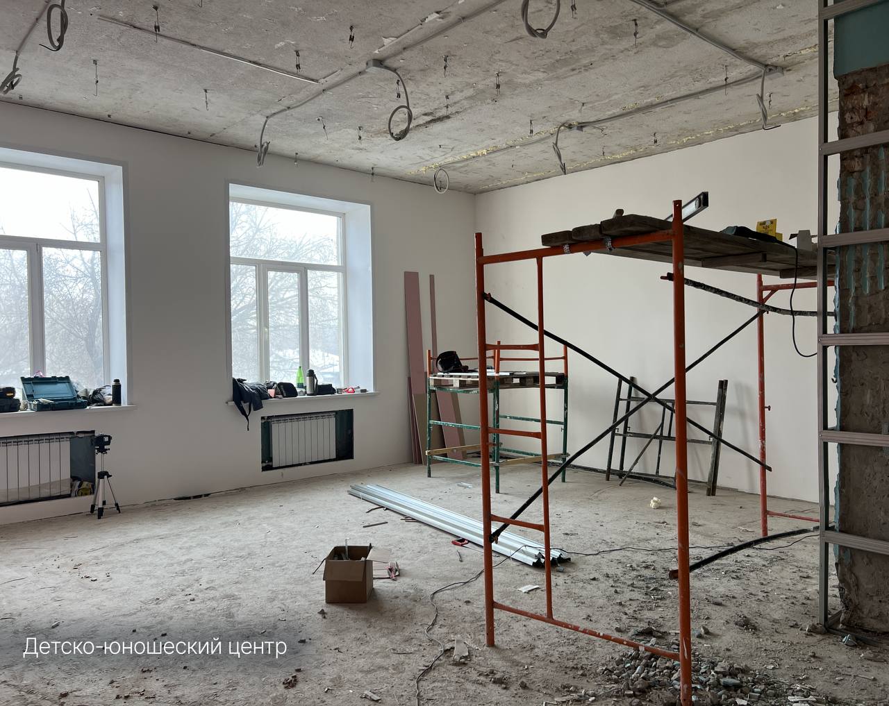 Также продолжается обновление Детско-юношеского центра по ул. Одесской, 6. Работы выполняет подрядная организация ООО «Эдельвейс». В настоящее время завершены работы по удалению старых покрытий, созданию ровного основания для пола, установке новых окон и выравниванию стен с помощью штукатурки.