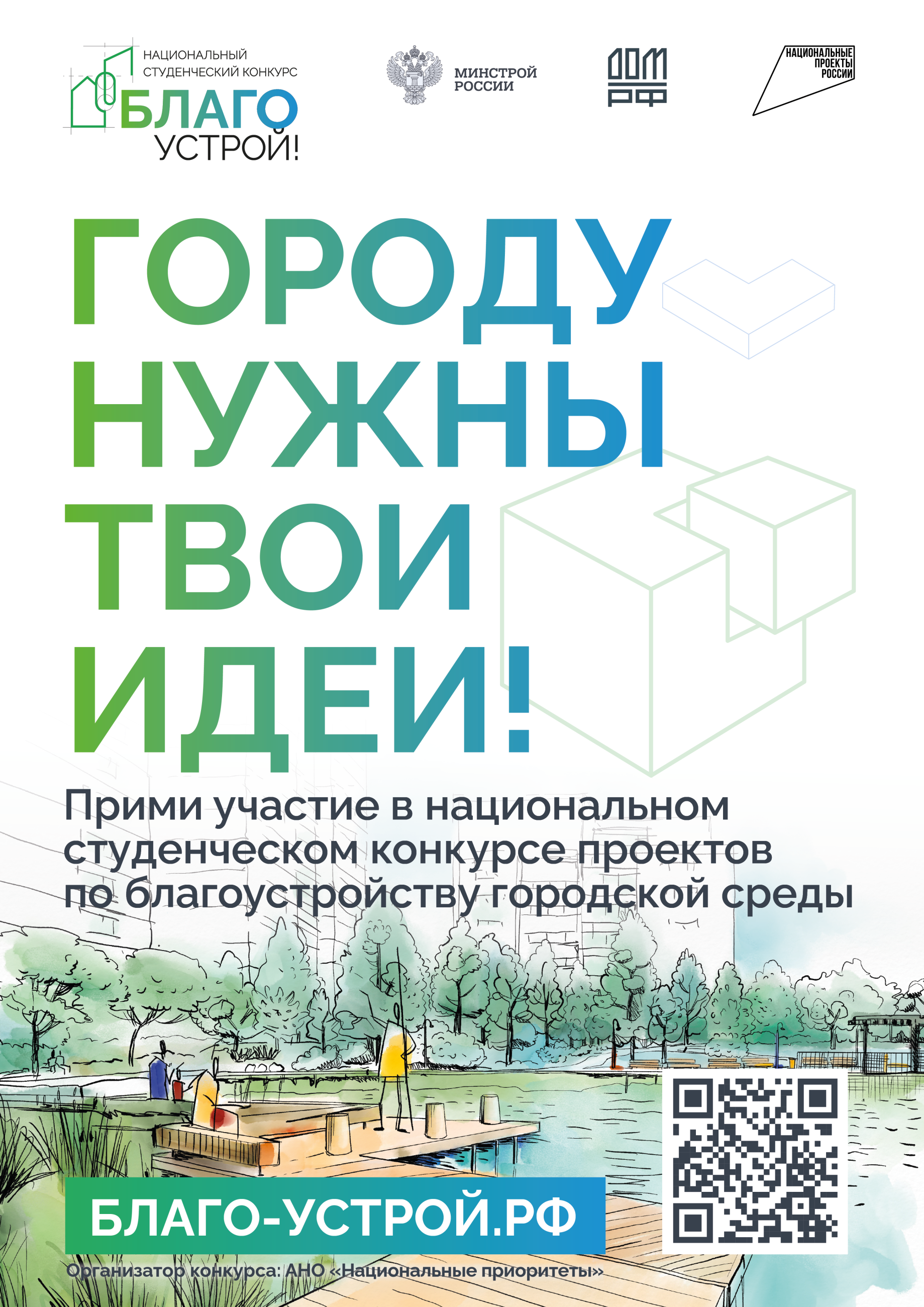 С 15 сентября на сайте благо-устрой.рф открыт прием заявок на участие в Национальном студенческом конкурсе «Благоустрой!» по разработке проектов благоустройства городских пространств. Конкурс организует АНО «Национальные приоритеты» совестно с Минстроем России и Институтом развития ДОМ.РФ.