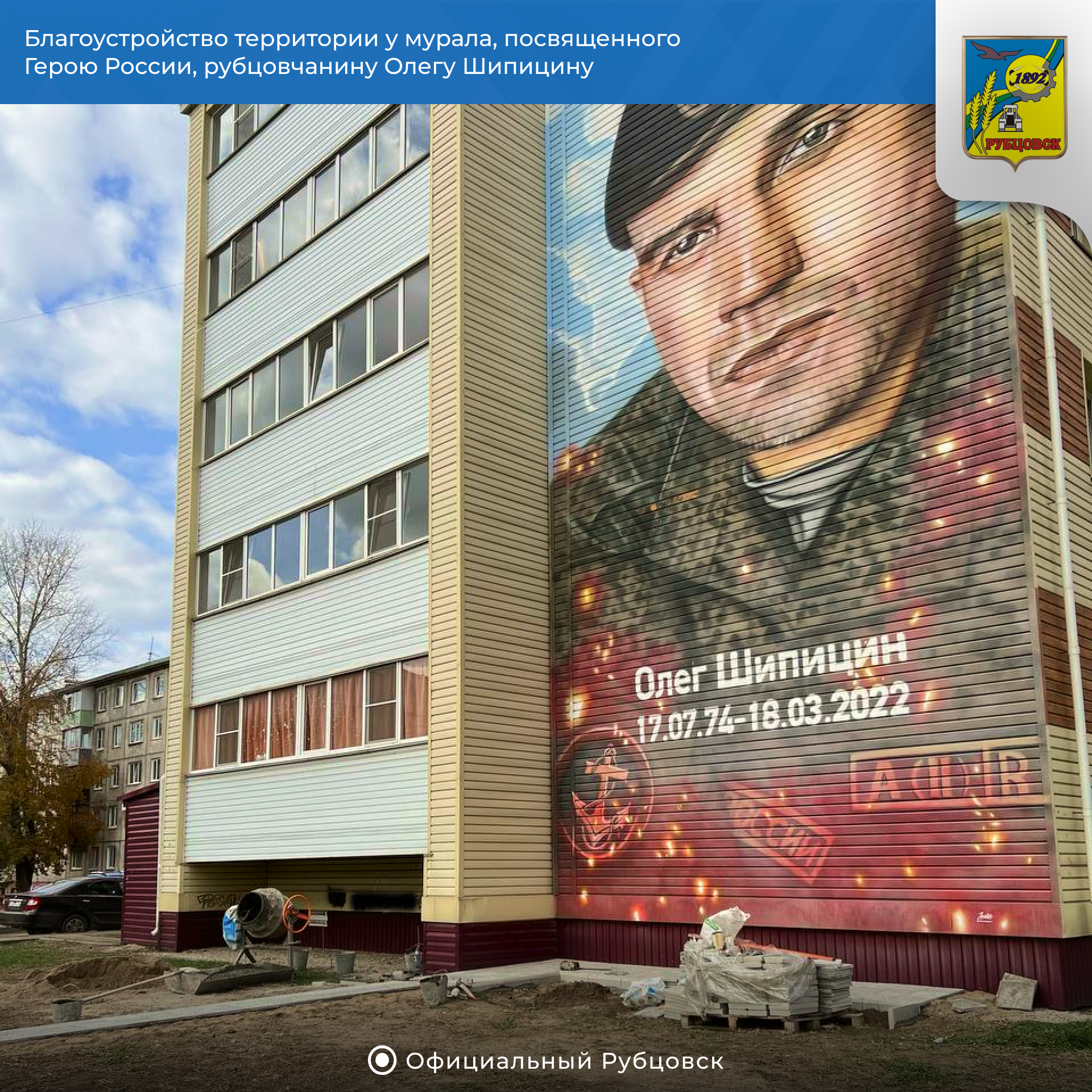 Администрацией города было принято решение – направить эти средства на благоустройство прилегающей территории с южной стороны пятиэтажного дома по пр-кту Ленина, 140, на стене которого в этом году был создан мурал, посвященный Герою России, рубцовчанину Олегу Шипицину.