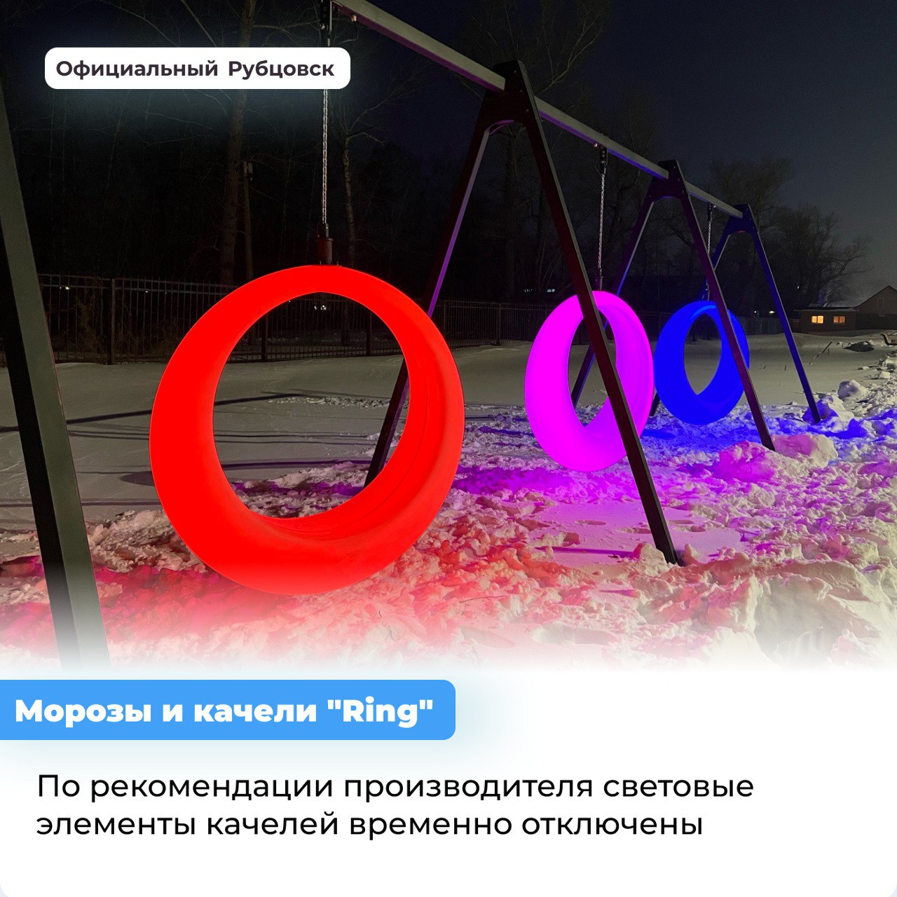 Уважаемые рубцовчане, необходимо бережно относиться к этим элементам благоустройства города и соблюдать правила использования качелей "Ring". Правила пользования качелями «Ring» простые: арт-объект по условиям эксплуатации работает при температуре: от -20 градусов до + 40 градусов и силы ветра не более 10 метров в секунду; максимальная нагрузка на посадочное место: 90 кг; угол раскачивания не более 20 градусов.