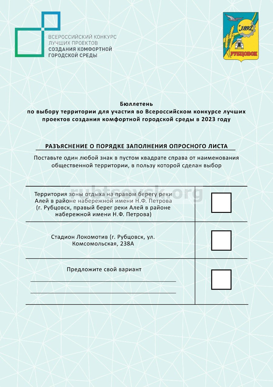 Рубцовчане, успейте отдать свой голос за общественные территории, которые могут быть благоустроены в нашем городе в 2023 году. Сегодня ‒ последний день, когда вы можете это сделать.