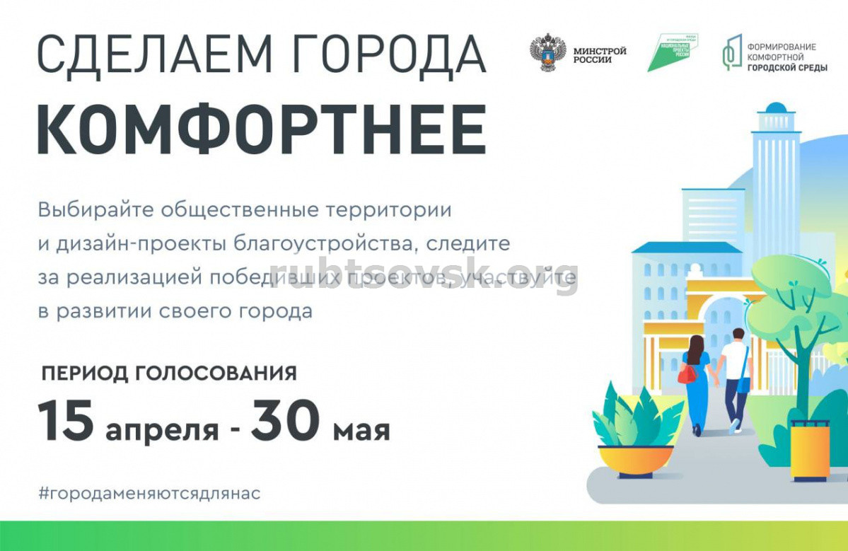 15 апреля в Рубцовске стартовало рейтинговое голосование за общественные территории, которые будут благоустроены в 2023 году по федеральной программе «Формирование комфортной городской среды». В нем участвует 14 объектов.