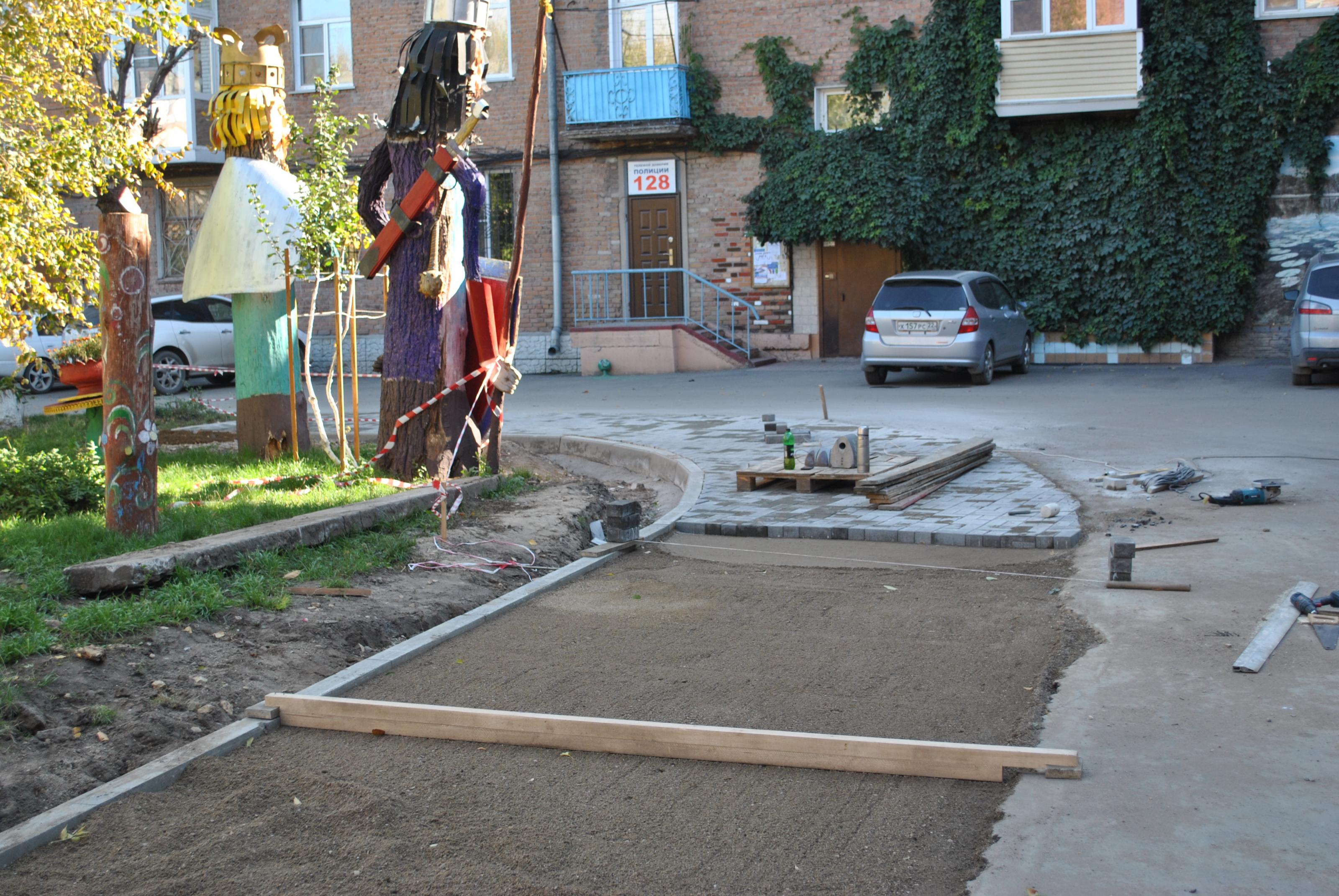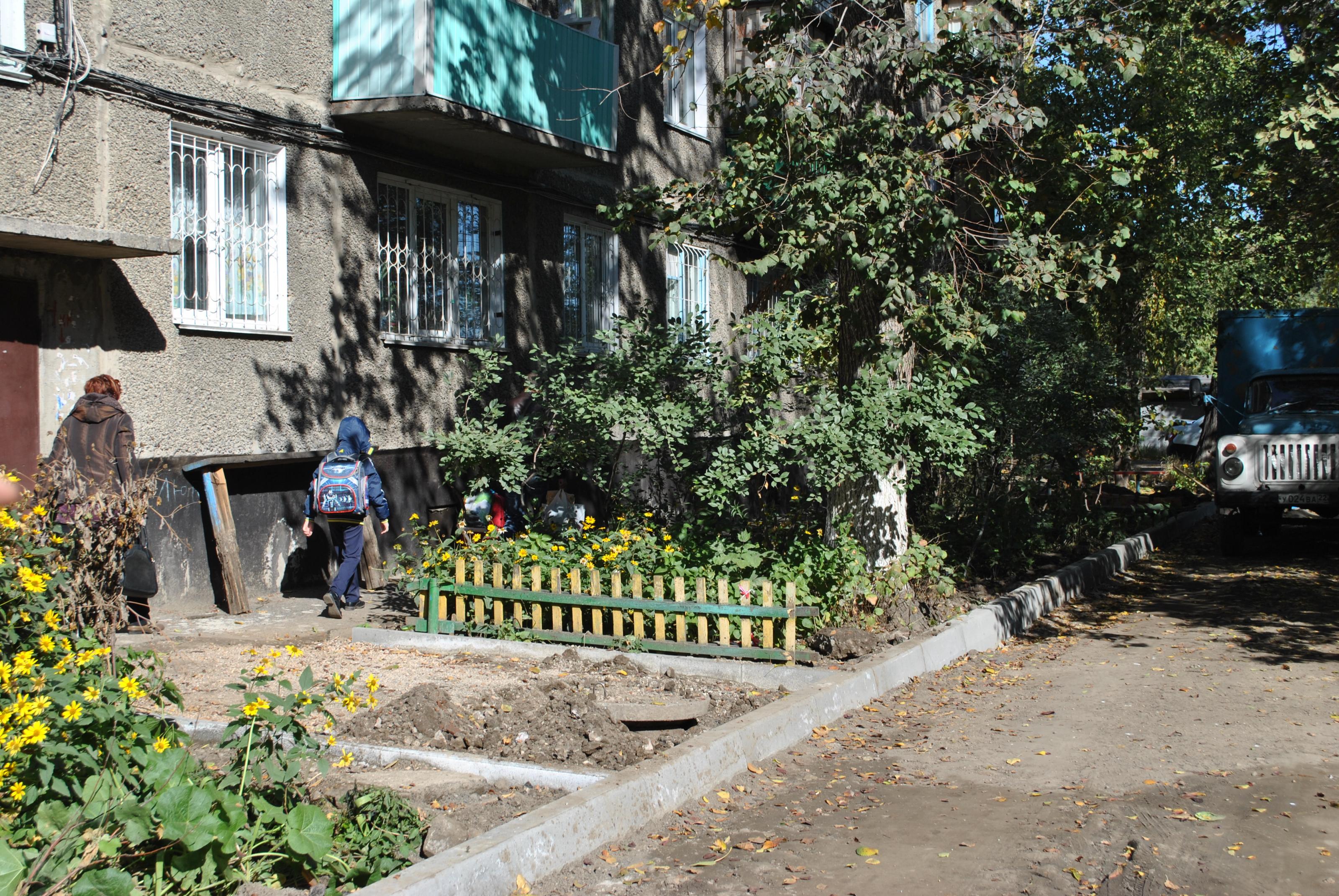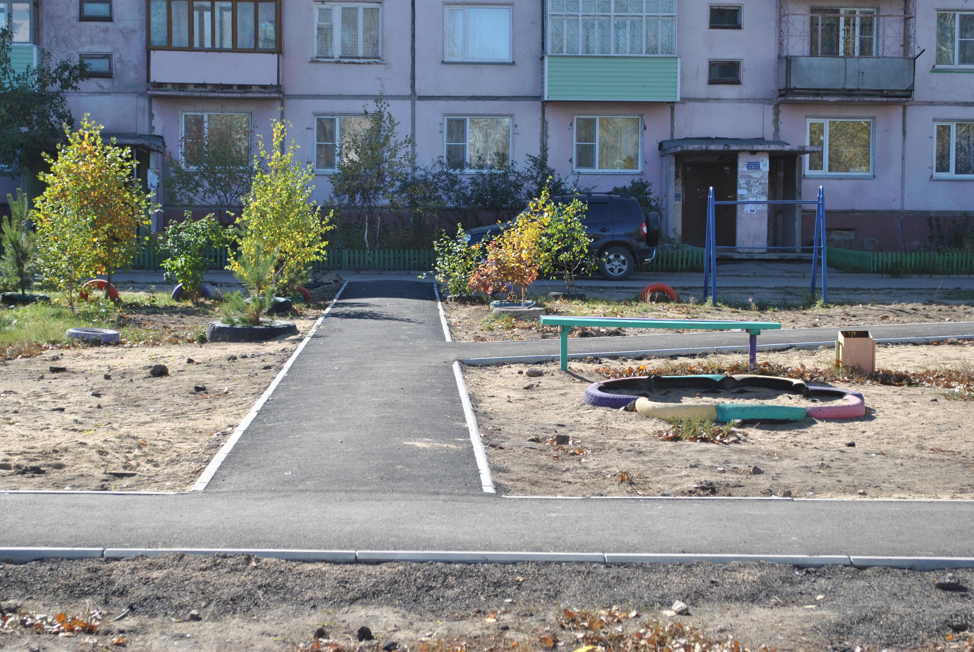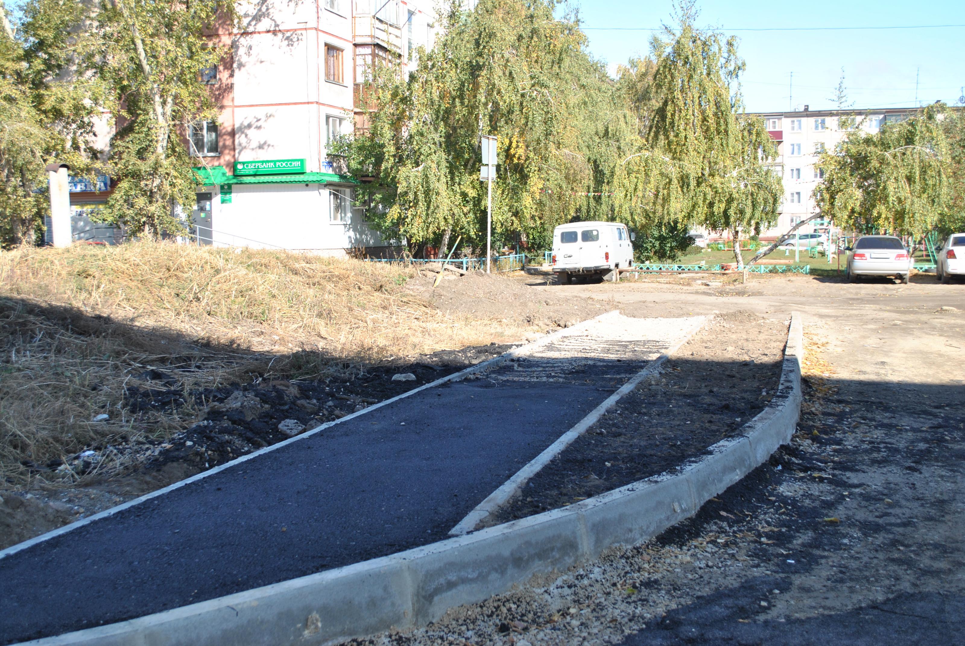 1. пр. Рубцовский, 39, 43, 45 – установлен бордюрный камень, уложена тротуарная плитка перед входом в подъезды, заасфальтирована тротуарная дорожка, выполнены работы по установке дождеприемного колодца, который соединен с центральной ливневой канализацией, ведутся подготовительные работы к асфальтированию территории.