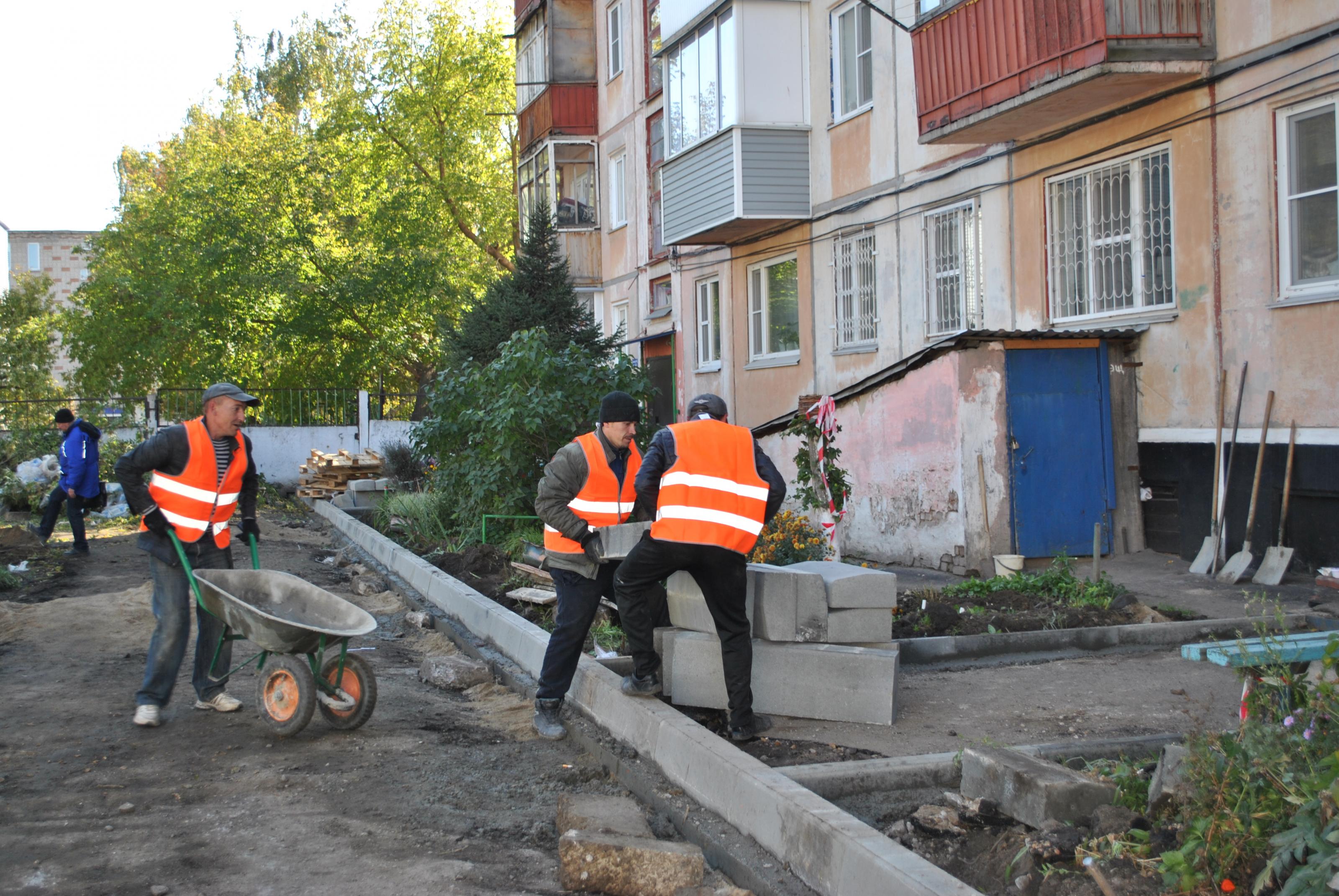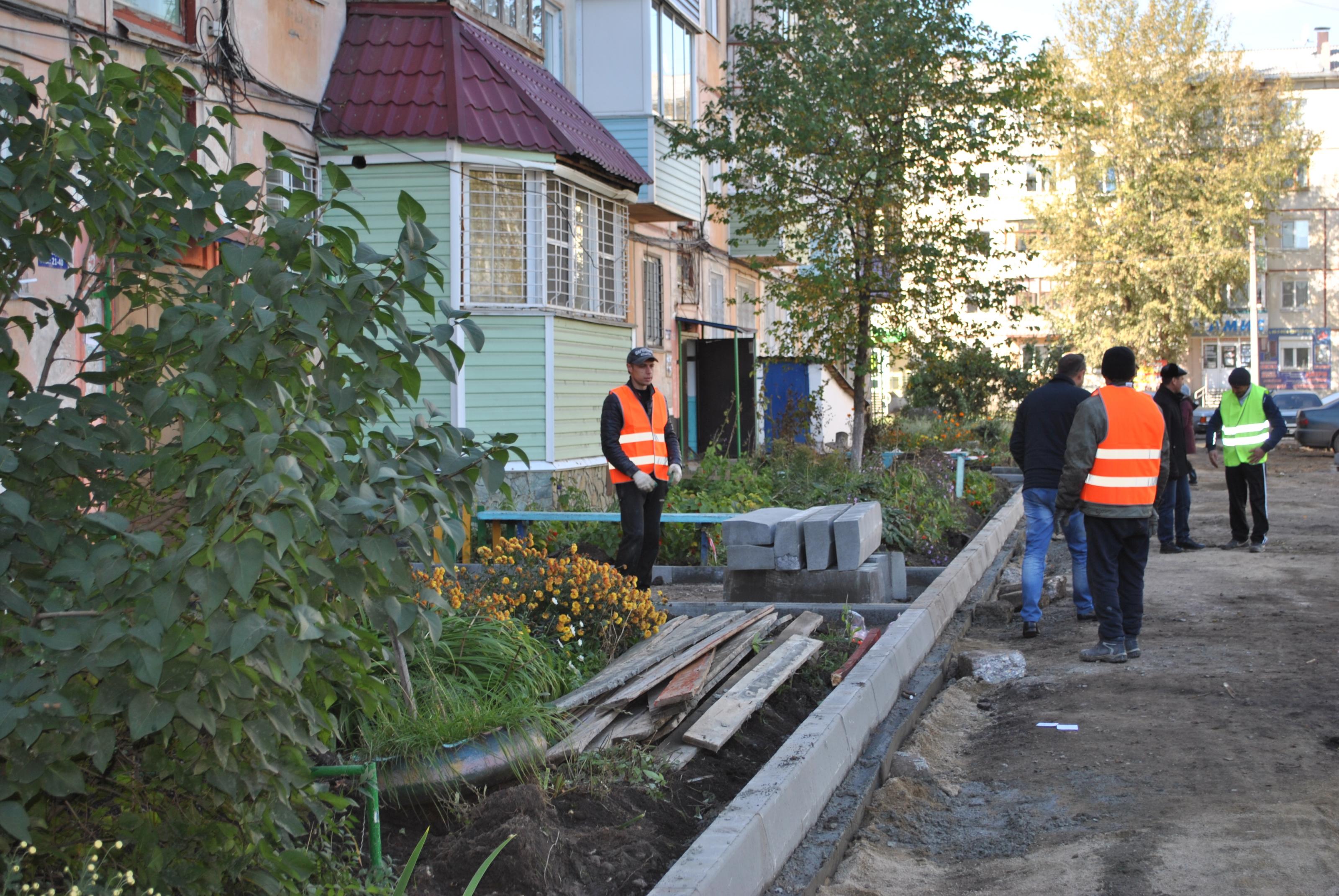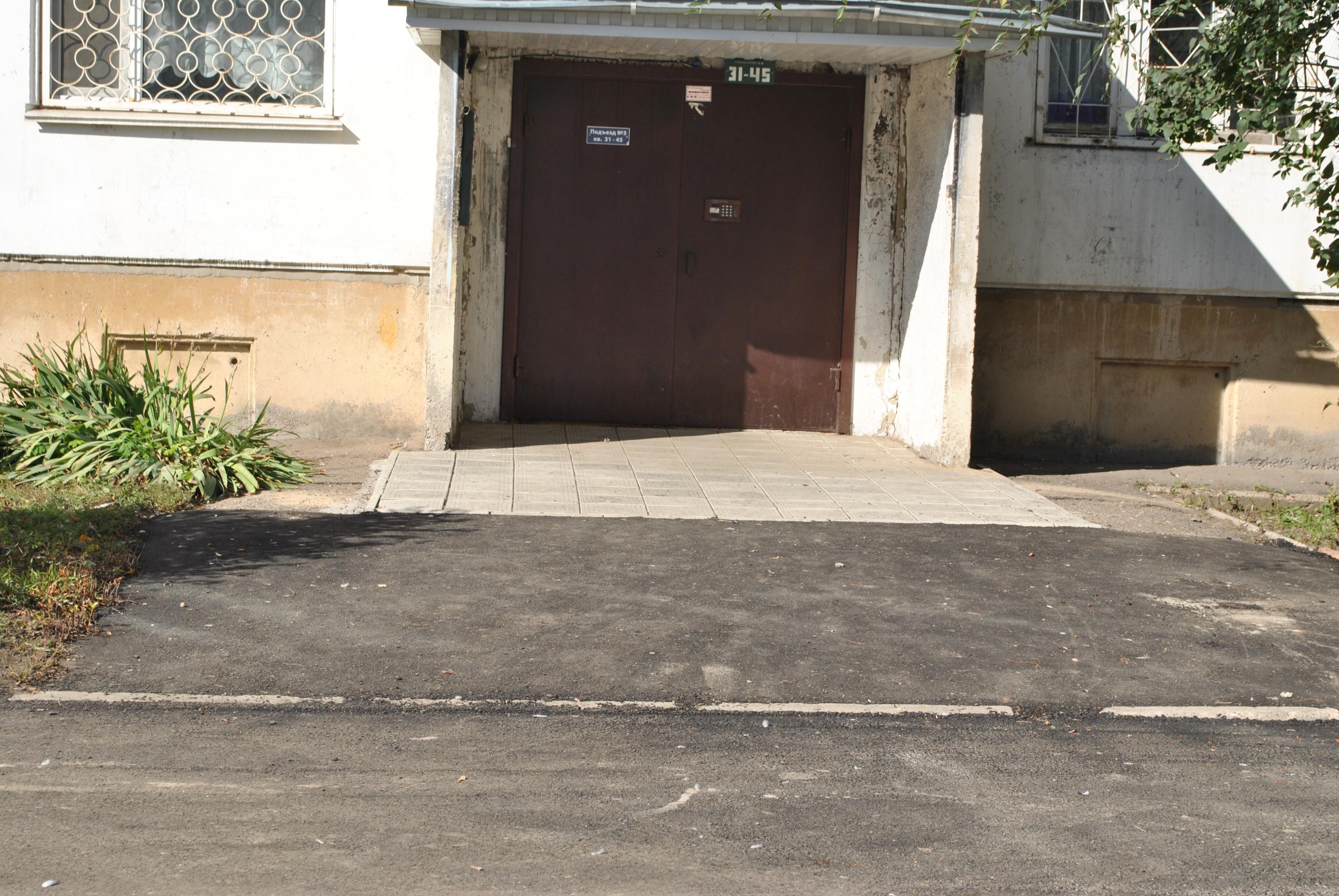 1. пр. Рубцовский, 39, 43, 45 – установлен бордюрный камень, уложена тротуарная плитка перед входом в подъезды, заасфальтирована тротуарная дорожка, выполнены работы по установке дождеприемного колодца, который соединен с центральной ливневой канализацией, ведутся подготовительные работы к асфальтированию территории.