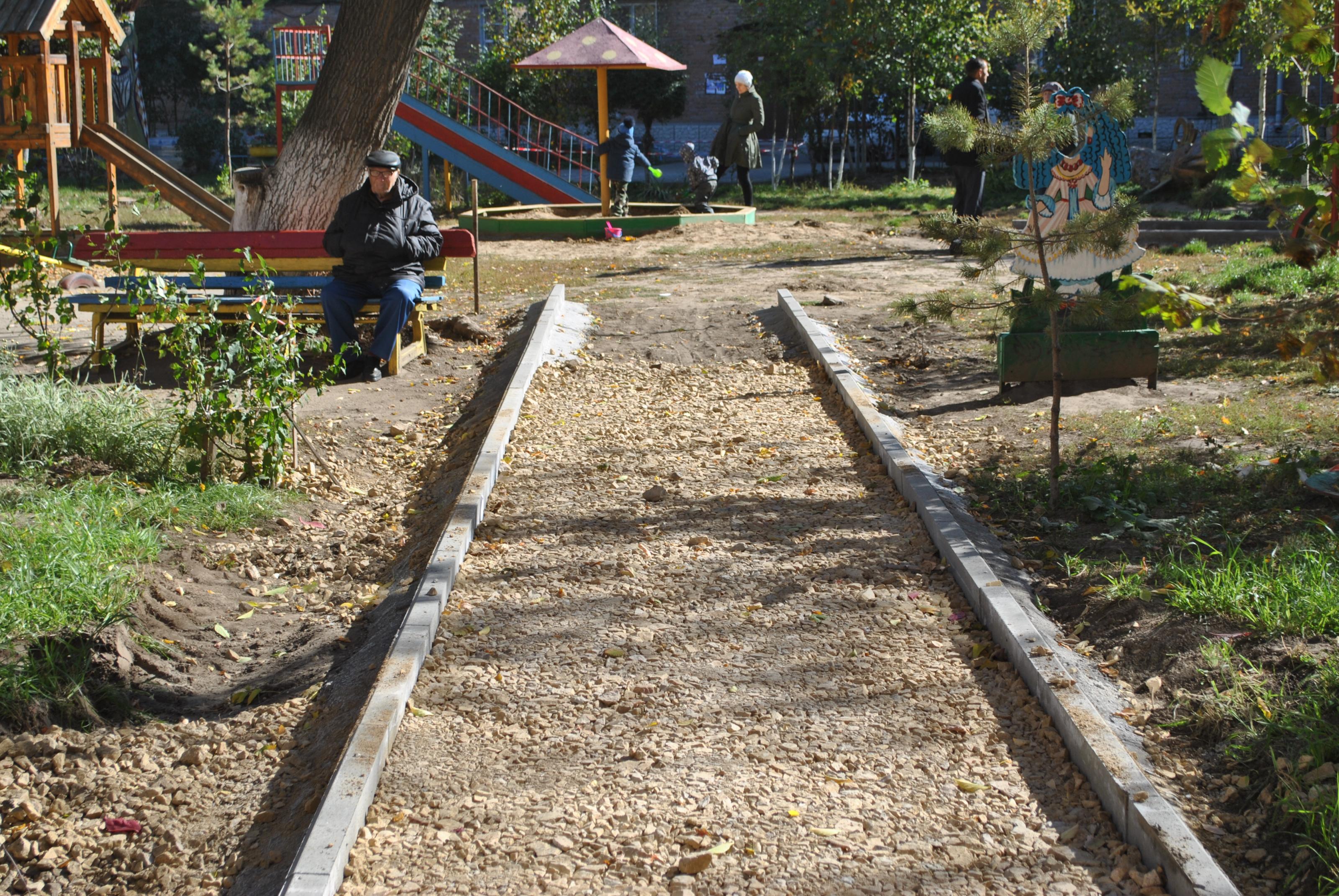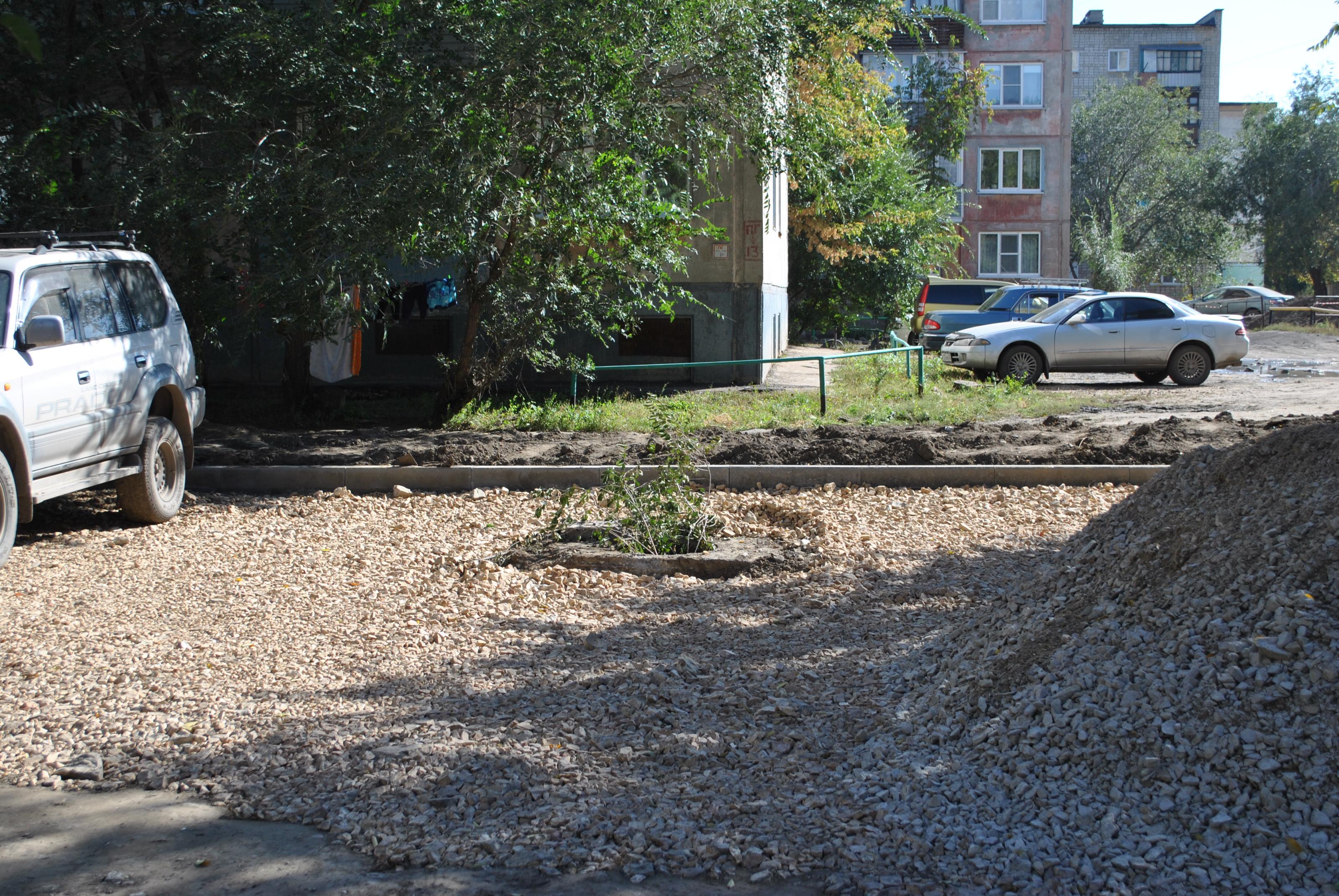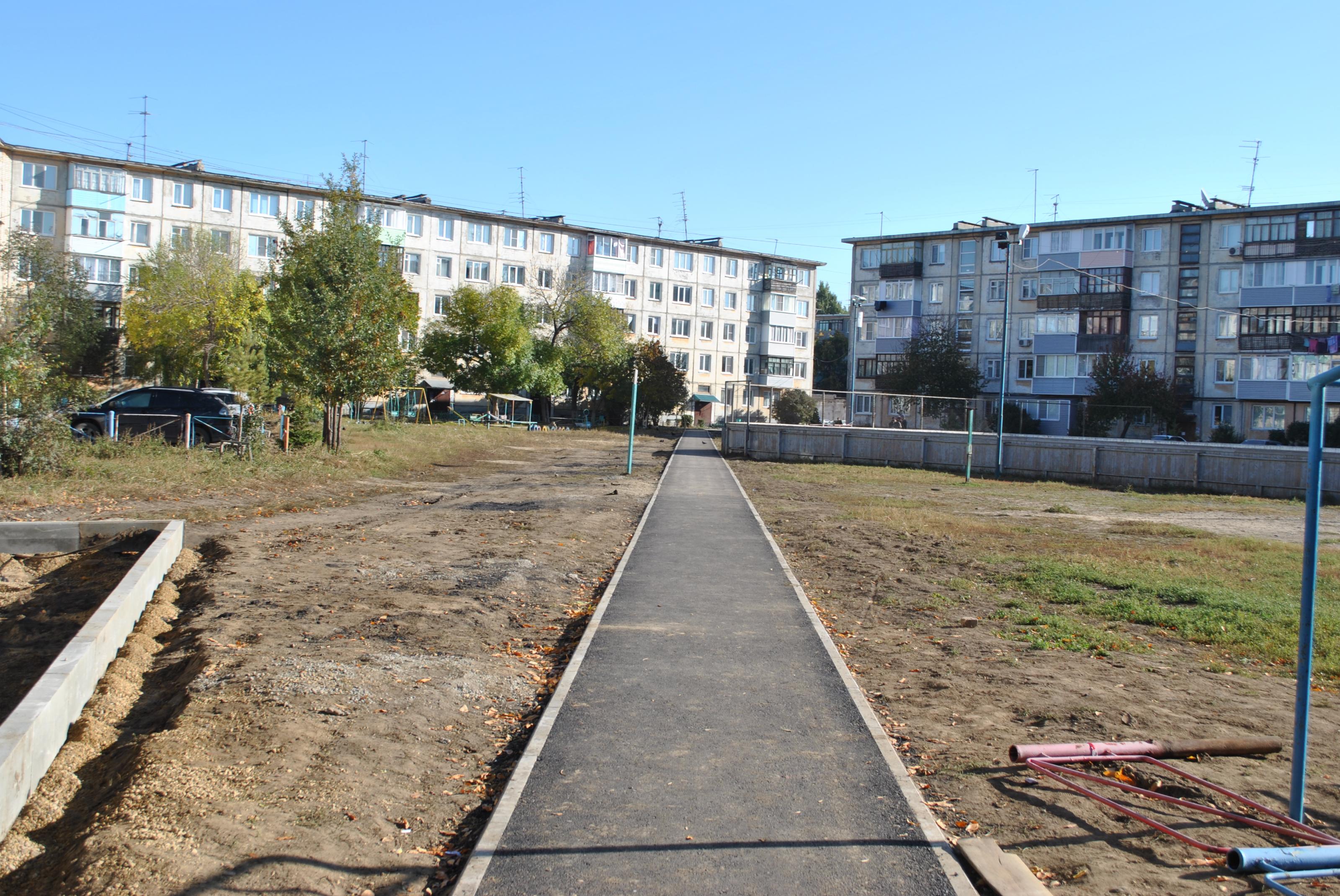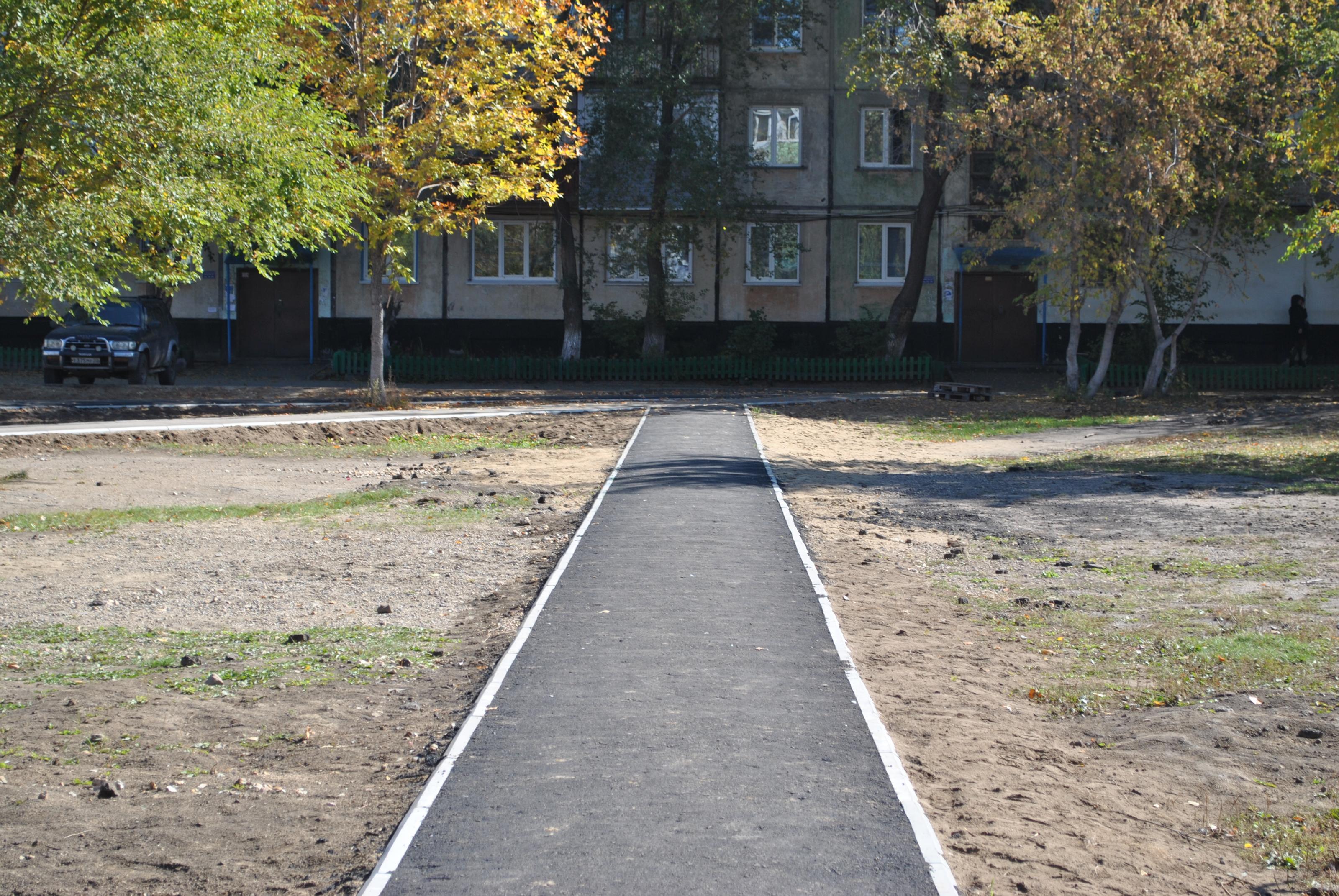 1. пр. Рубцовский, 39, 43, 45 – установлен бордюрный камень, уложена тротуарная плитка перед входом в подъезды, заасфальтирована тротуарная дорожка, выполнены работы по установке дождеприемного колодца, который соединен с центральной ливневой канализацией, ведутся подготовительные работы к асфальтированию территории.