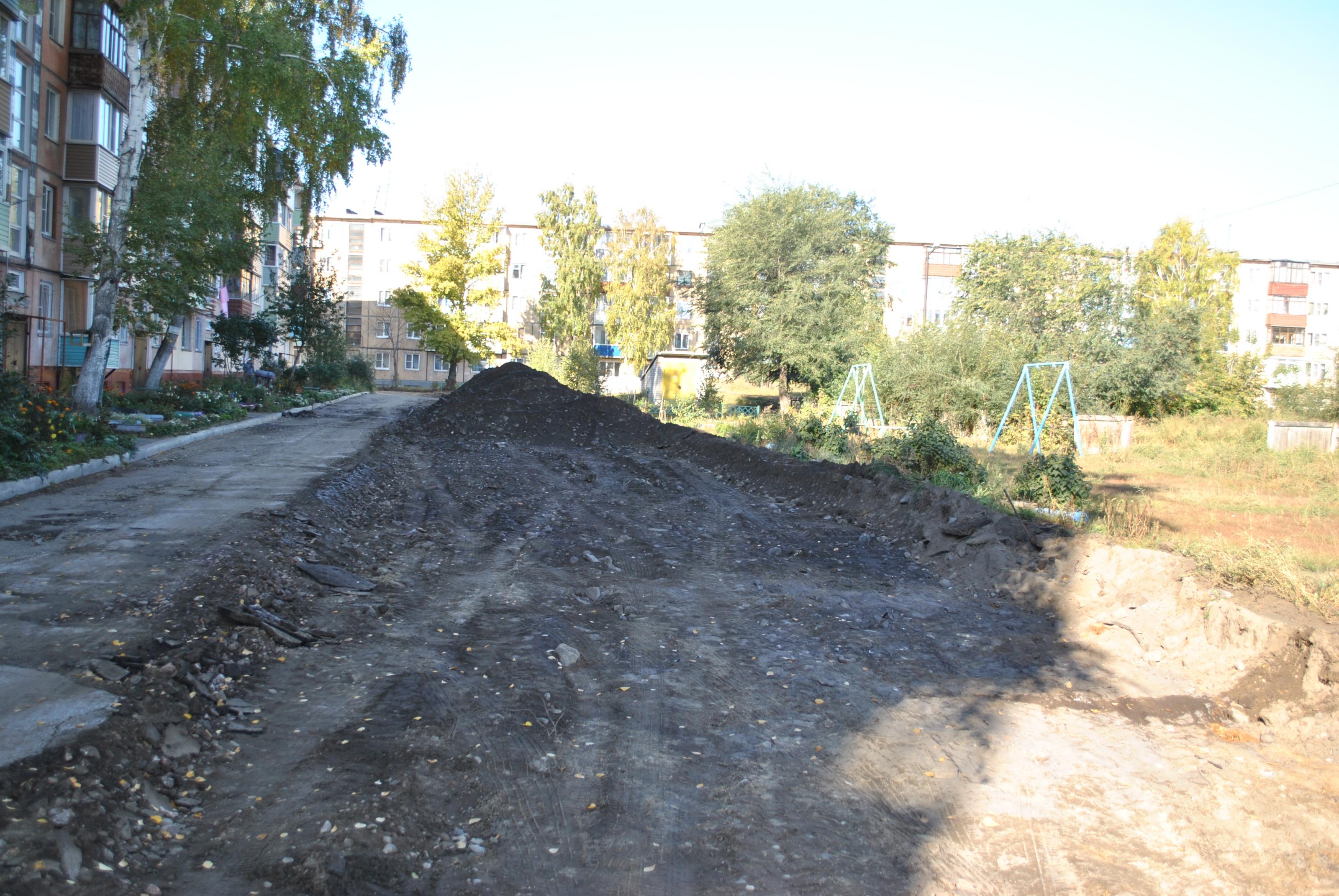 2. пр. Рубцовский, 9, 11, 13 – в соответствии с проектом ведутся работы по спиливанию старых деревьев, выполняется демонтаж старых бордюр, подготовлена площадка для парковочного места.