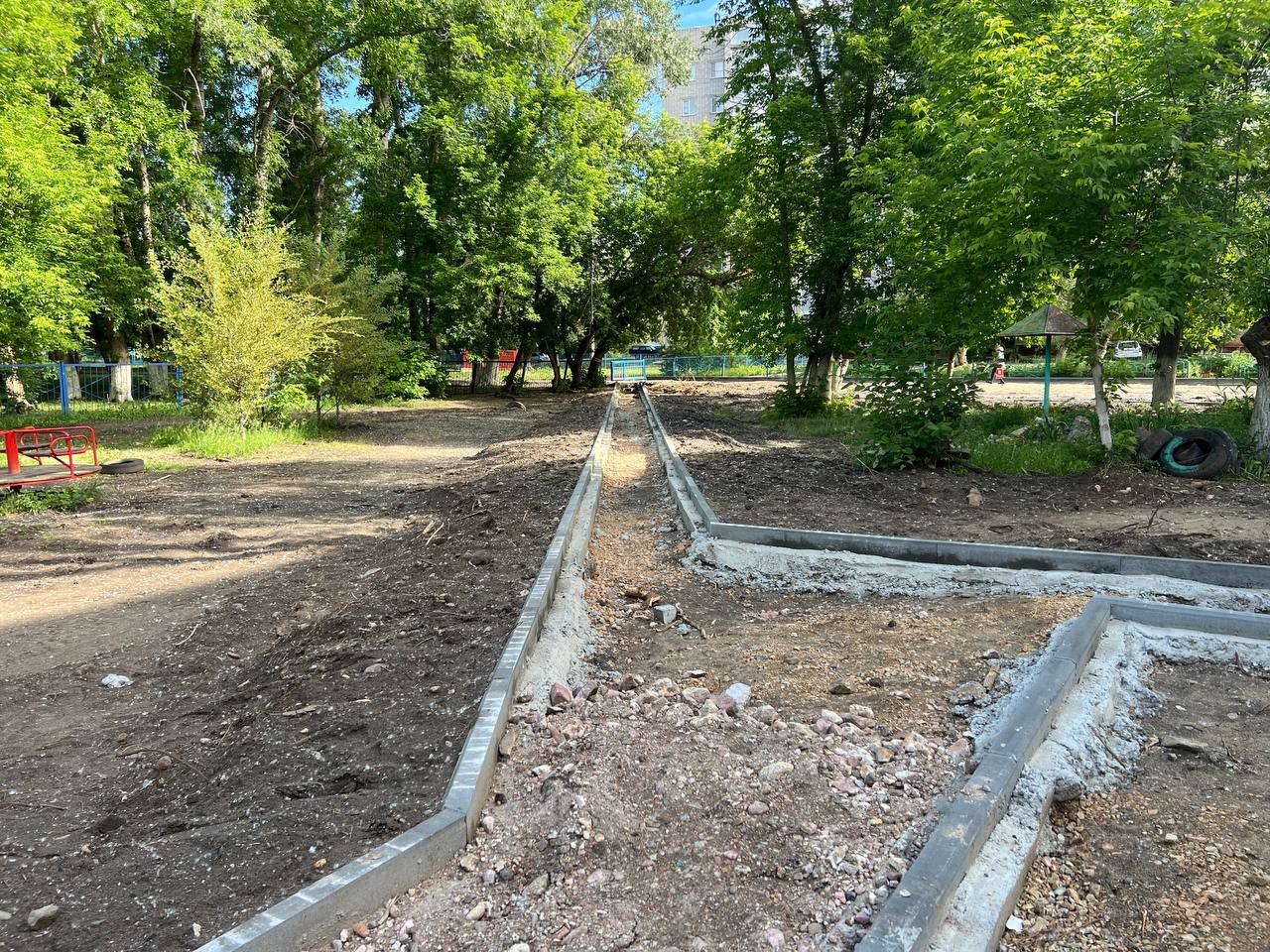 Во дворе по ул. Комсомольской, 143 подрядчик ведёт установку бордюрного камня, а по ул. Пролетарской, 238 начаты подготовительные работ.