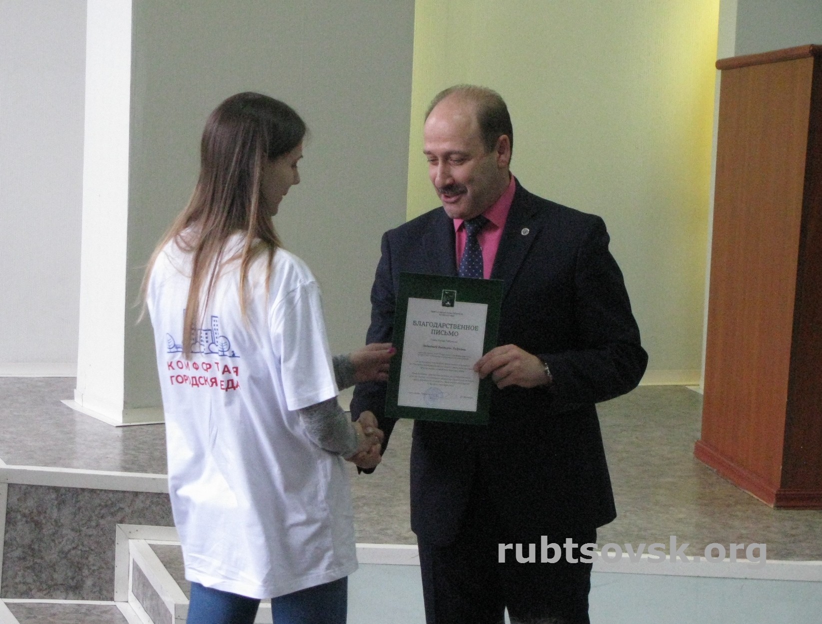 Сегодня в большом зале Администрации города прошло чествование студентов Рубцовского индустриального института и Рубцовского института (филиала) Алтайского Государственного Университета, которые приняли активное участие в организации и проведении рейтингового голосования за общественные территории Рубцовска в рамках программы «Формирование современной городской среды» 18 марта 2018 года.